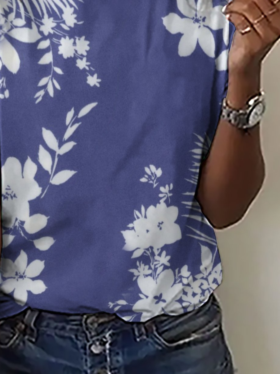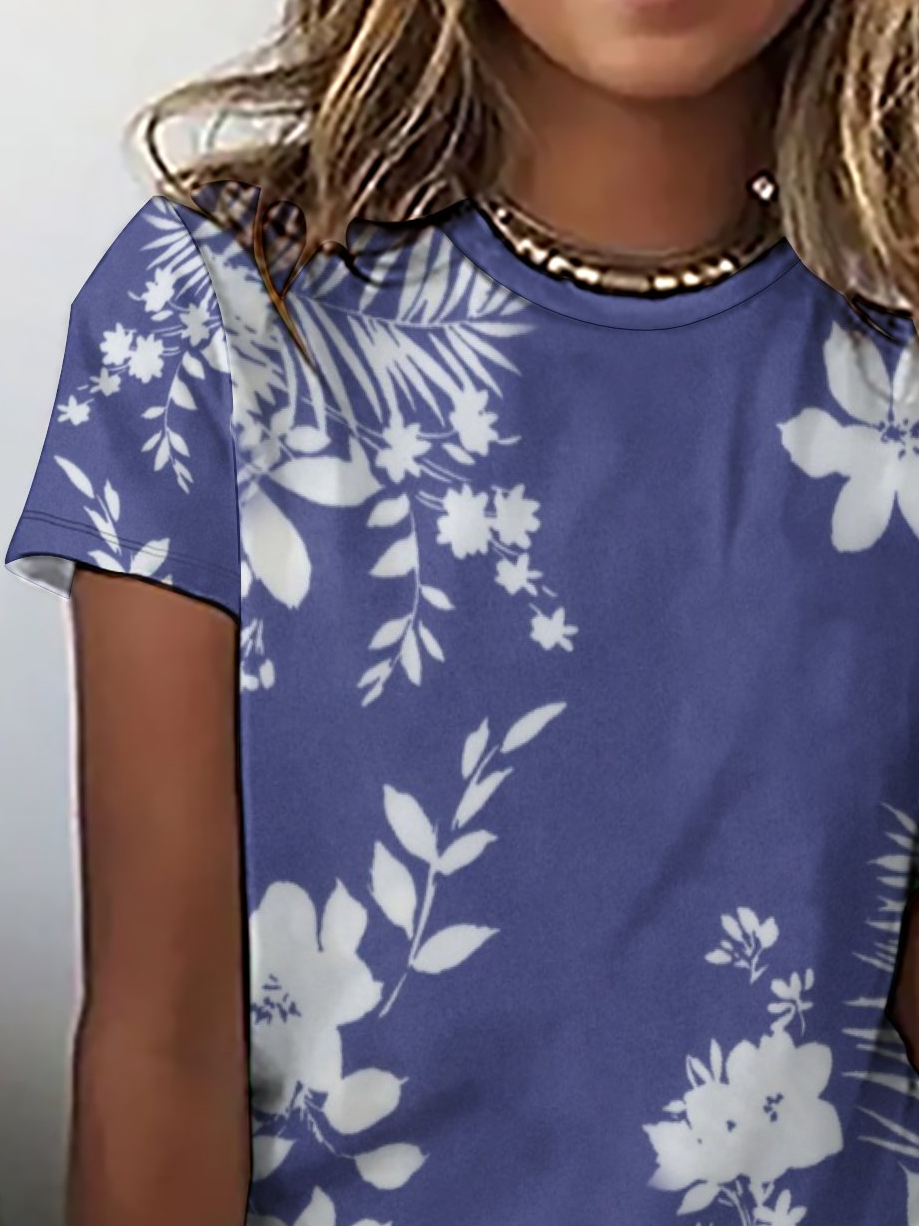 Vintage Casual Floral Print Crew Neck T-Shirt