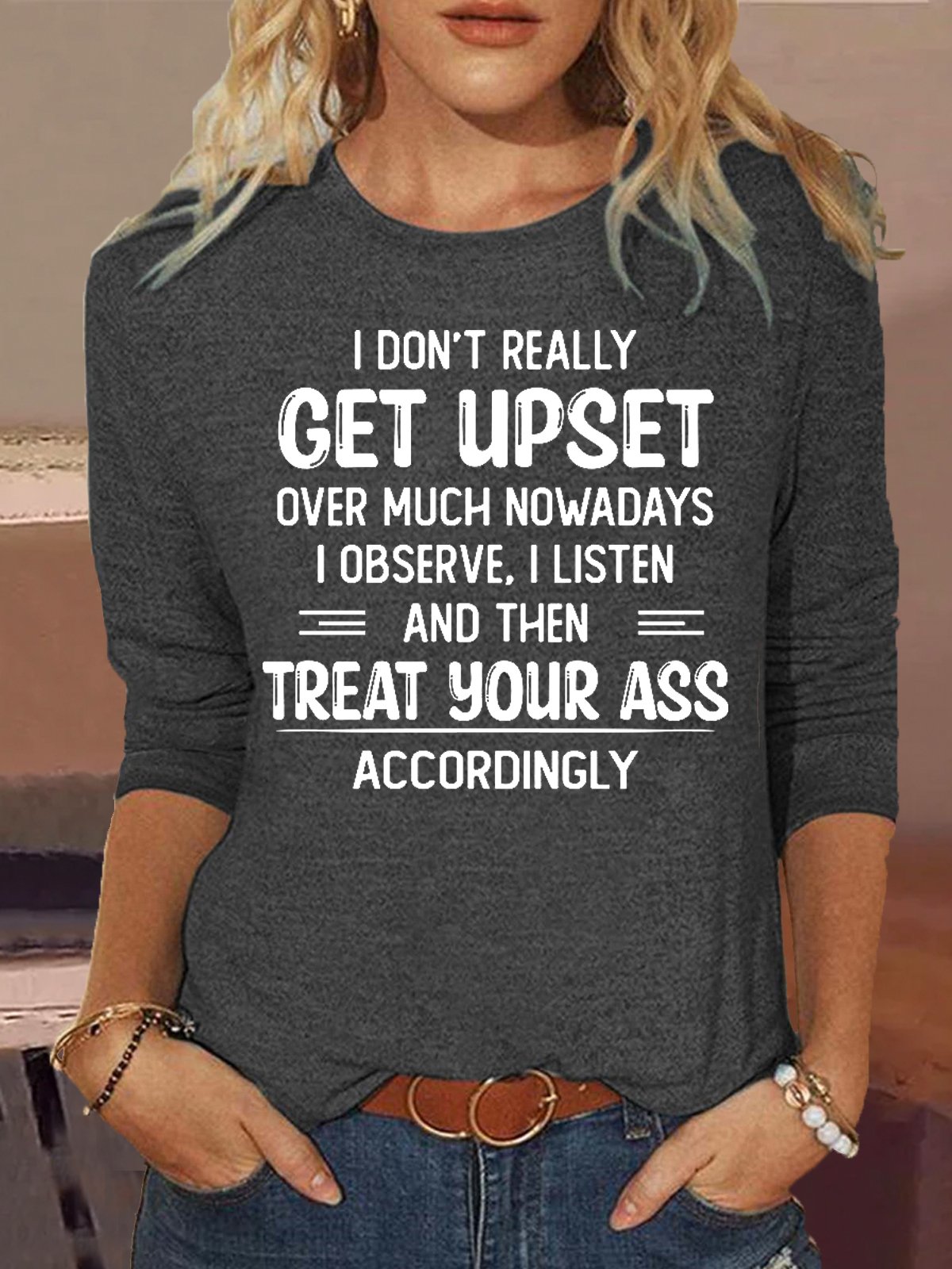 Women's I Don't Really Get Upset Letter Casual Shirt