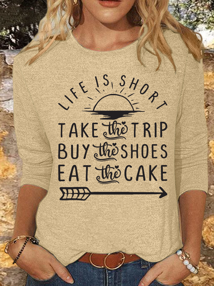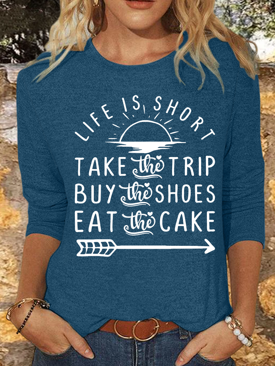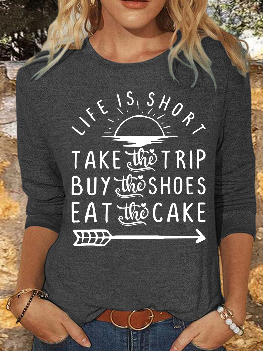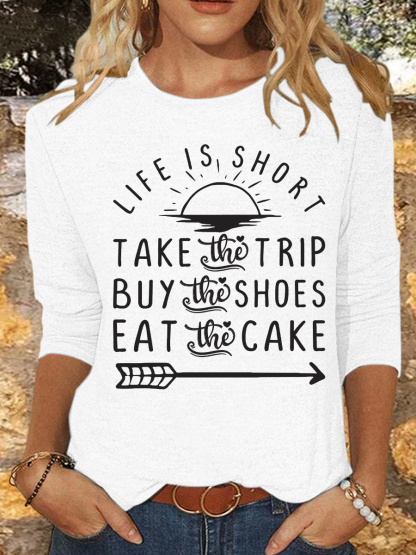 Women's Life Is Short, LIfe Is Short Text Letters Long Sleeve Casual Shirt