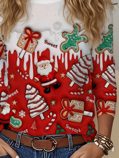 Women's Long Sleeve T-shirt Spring/Fall Red Christmas Printing Jersey Crew Neck Daily Going Out Casual Top