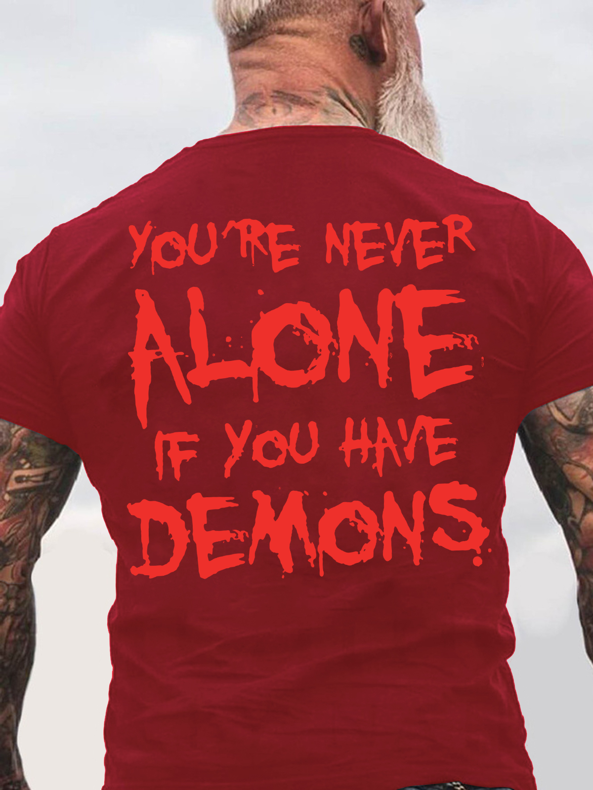 You're Never Alone If You Have Demons Black Print Back Cotton T-Shirt
