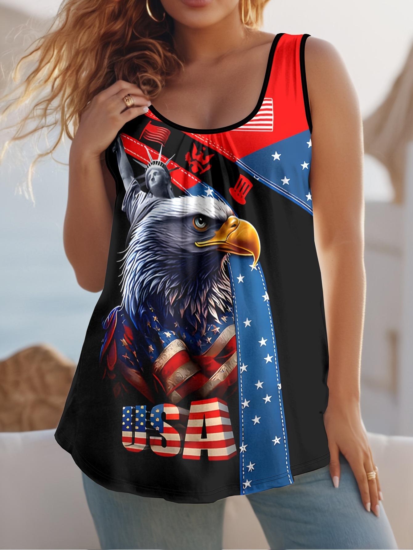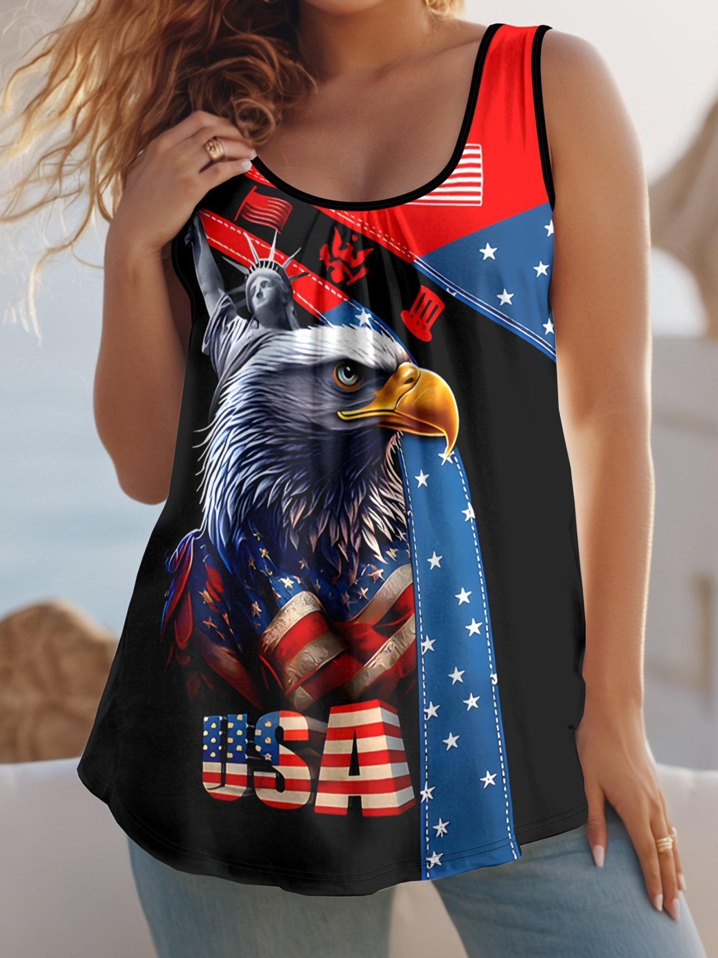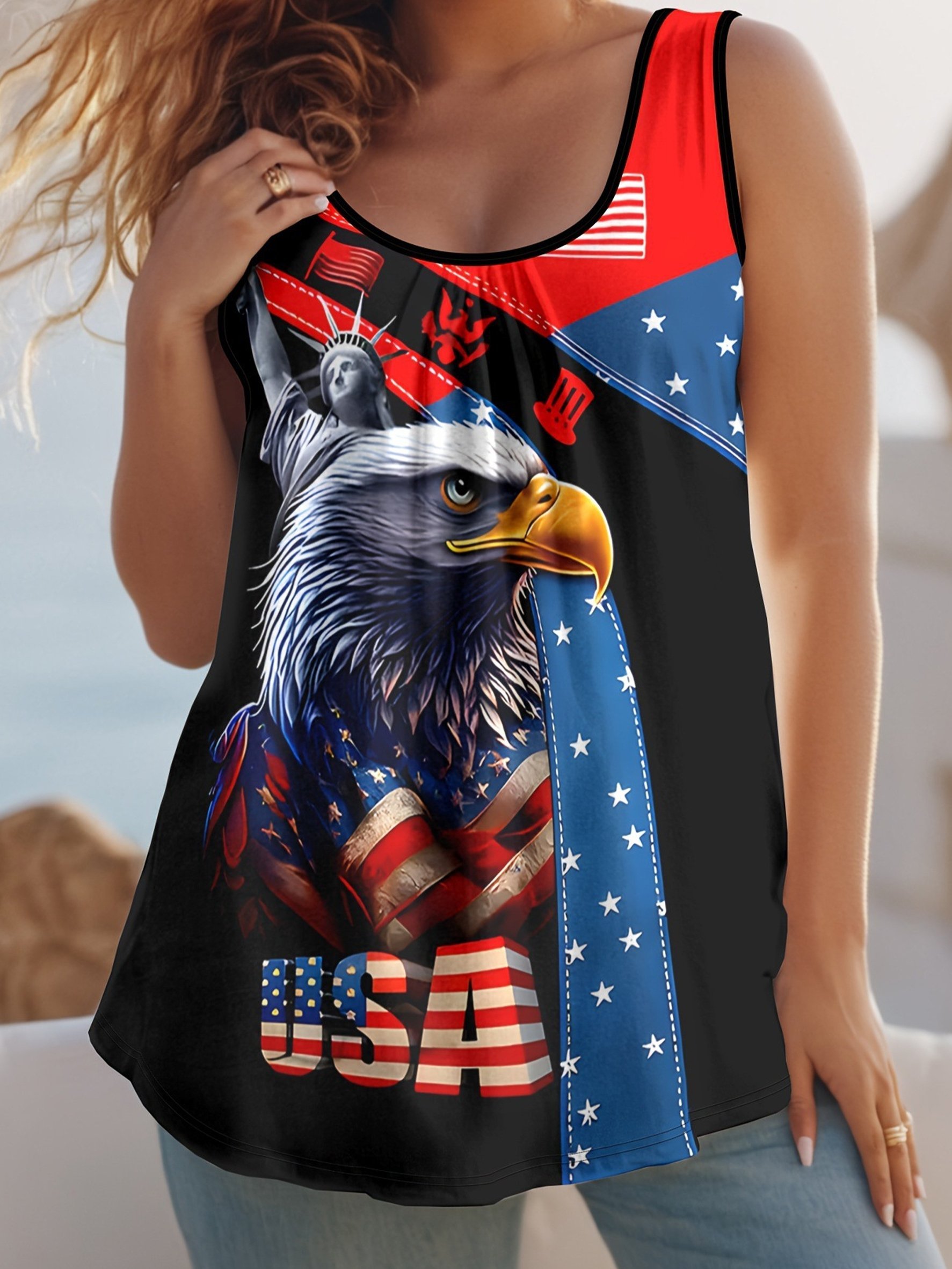 3D Pringting America Flag Eagle Old Glory Jersey Casual Tank Top