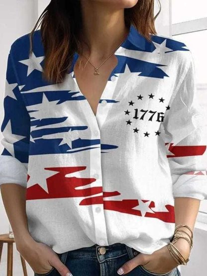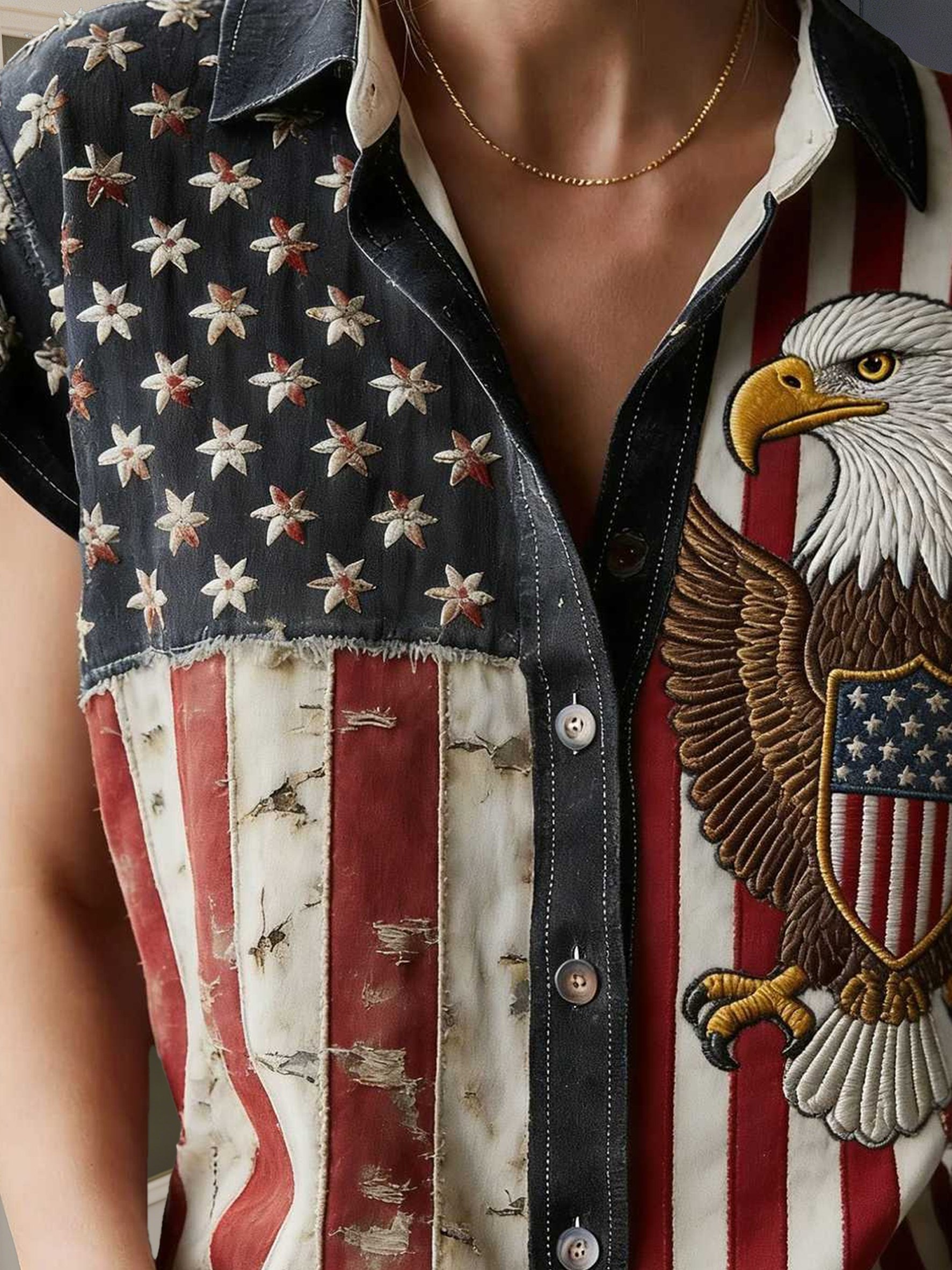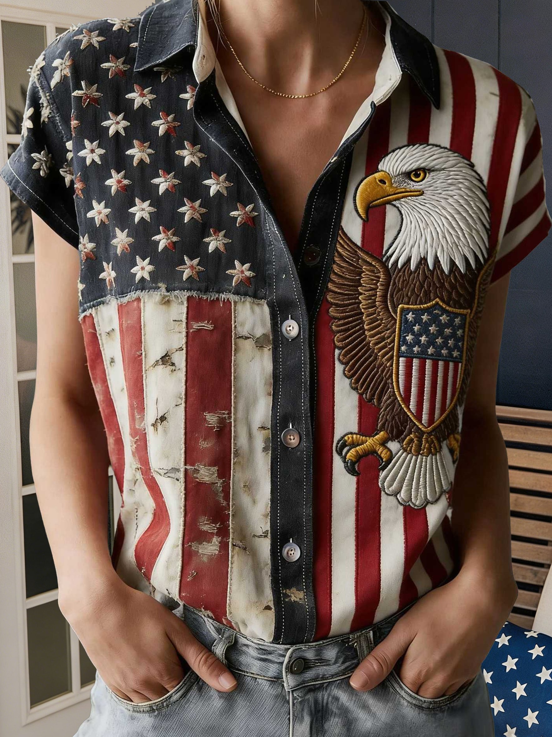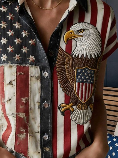 3D Printing America Flag Shirt Collar Short Sleeve Eagle Old Glory Vintage Casual Shirt