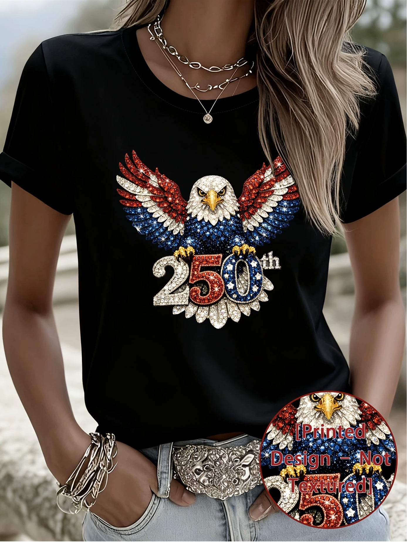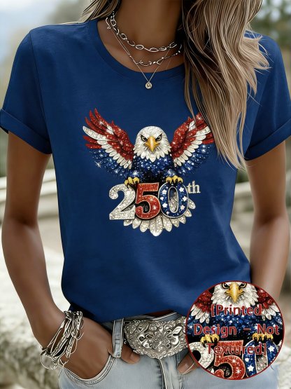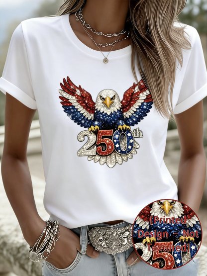 3D Printing Eagle Old Glory Round Neck Short Sleeve 250th Anniversary Vintage Casual T-Shirt