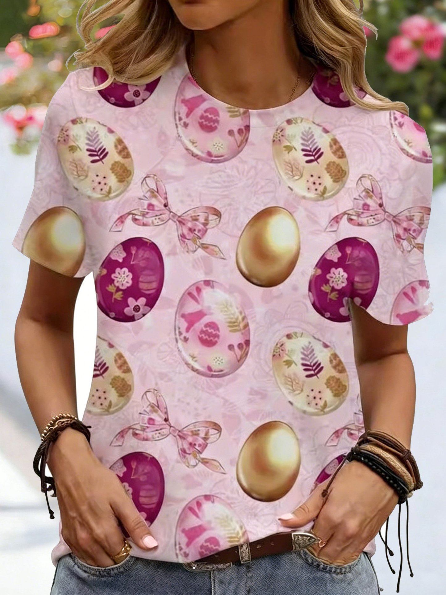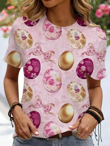 3D Printing Short Sleeve Round Neck Easter Egg Summer Casual T-Shirt