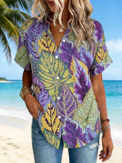 3D Printing Tropical Printed Shawl Collar Short Sleeve Summer Vacation Going Out Casual Shirt