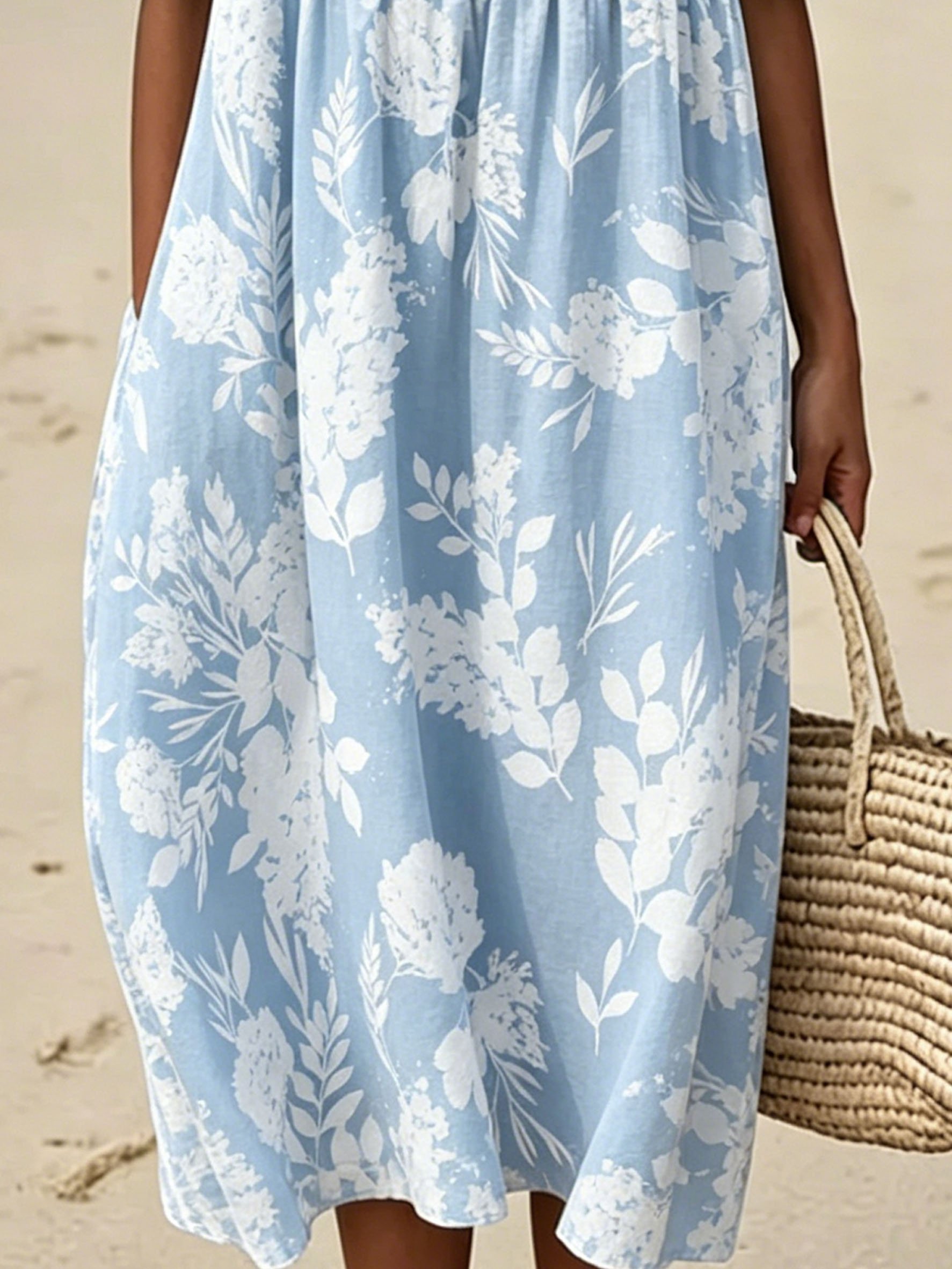 Blue Floral Crew Neck Short Sleeve Summer Daily Going Out Casual Maxi Dress