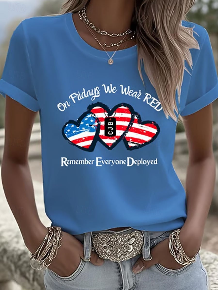Casual Cotton Crew Neck Independence Day T-Shirt