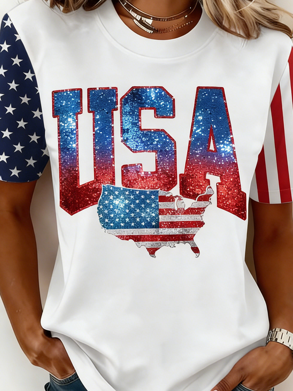 Casual Cotton Usa/Us/American Regular Fit T-Shirt