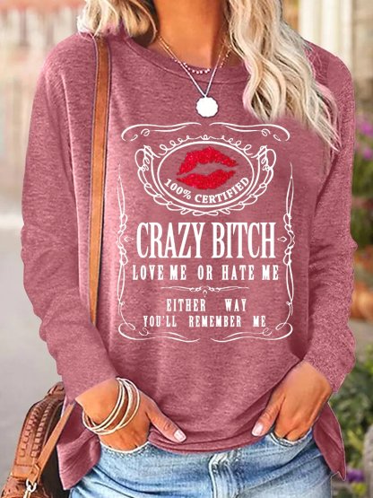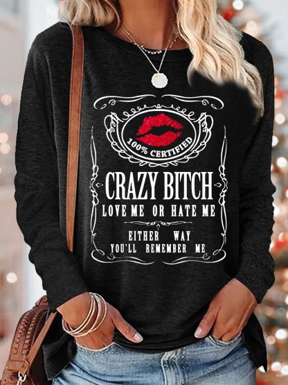 Womens Funny Crazy Bitch Letters Casual Crew Neck Top
