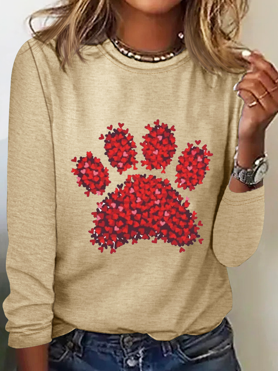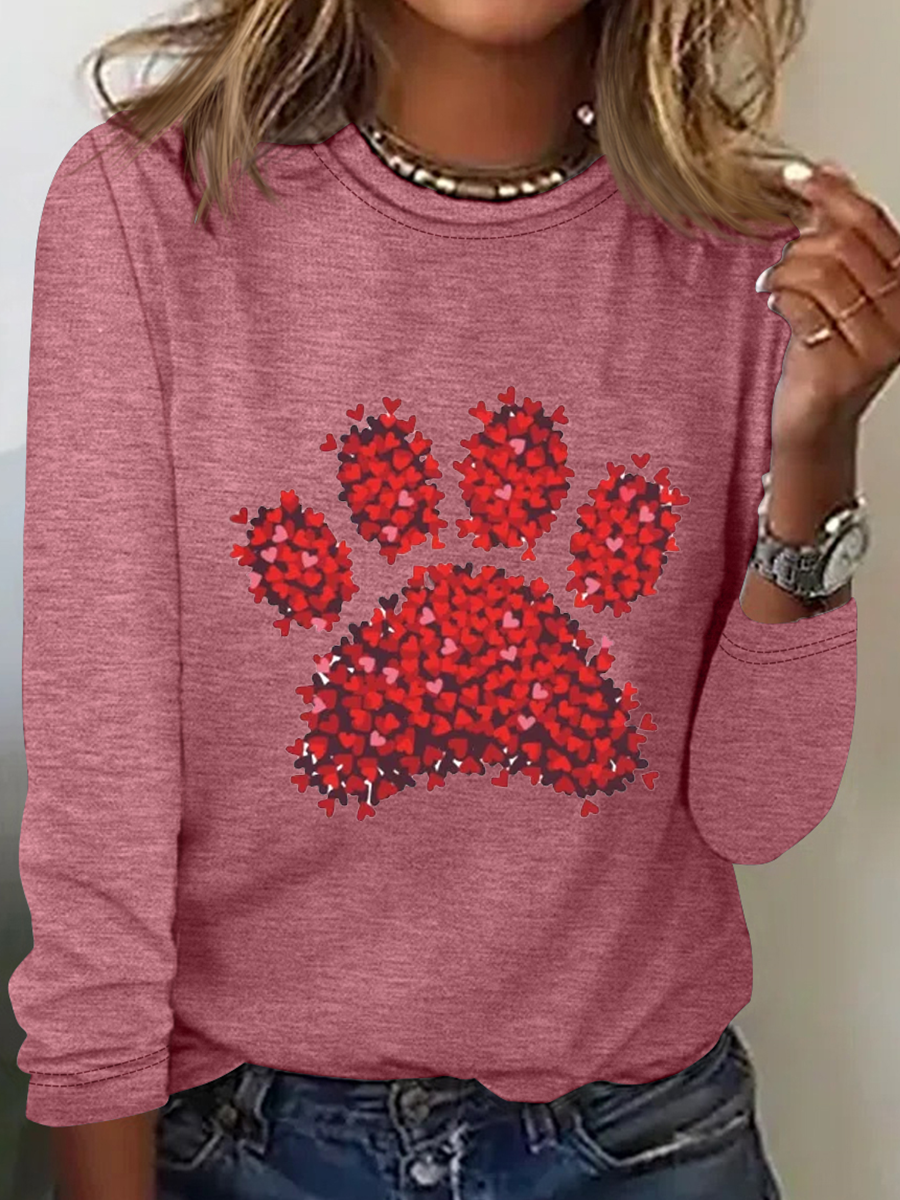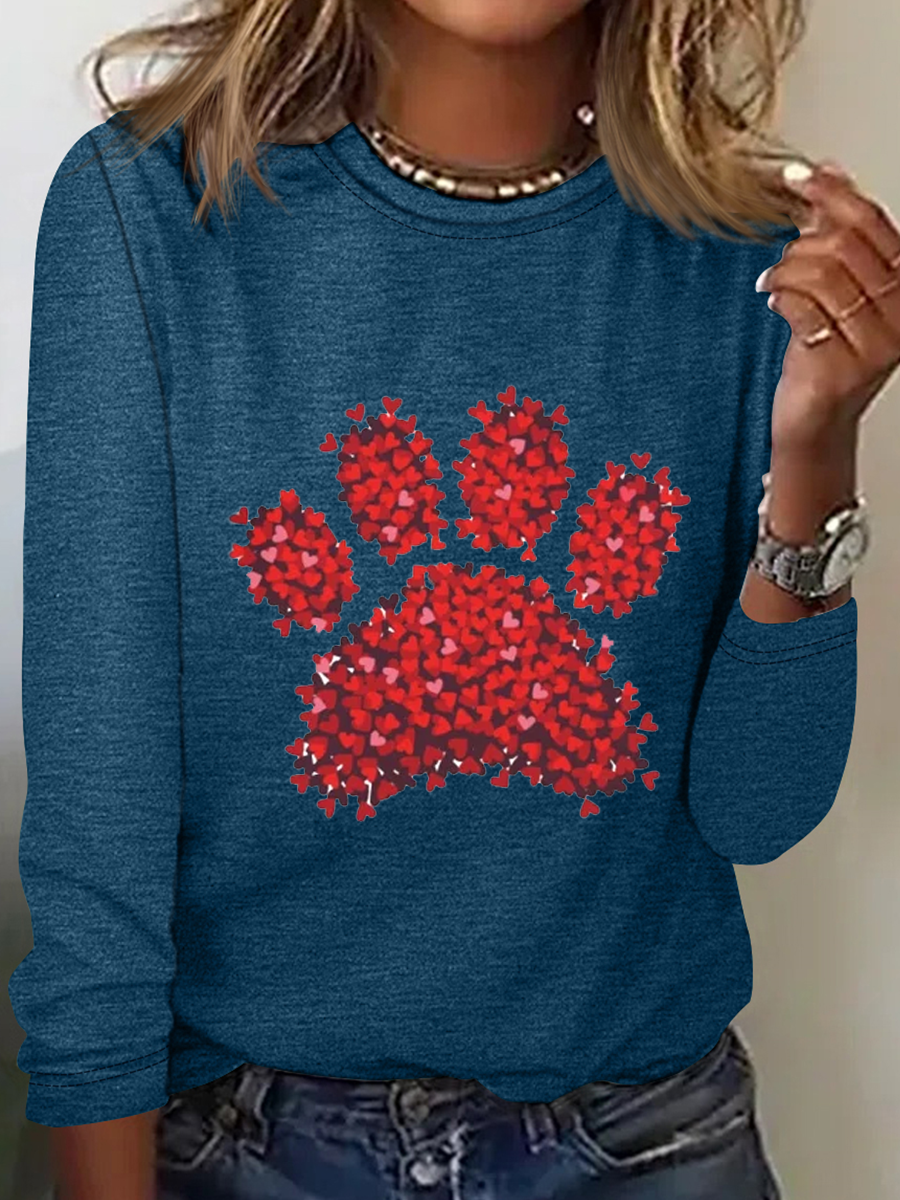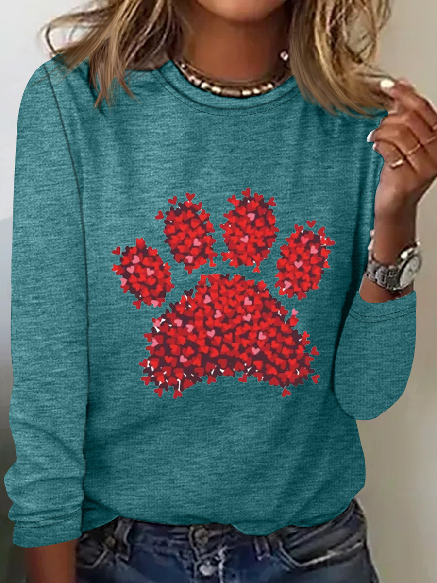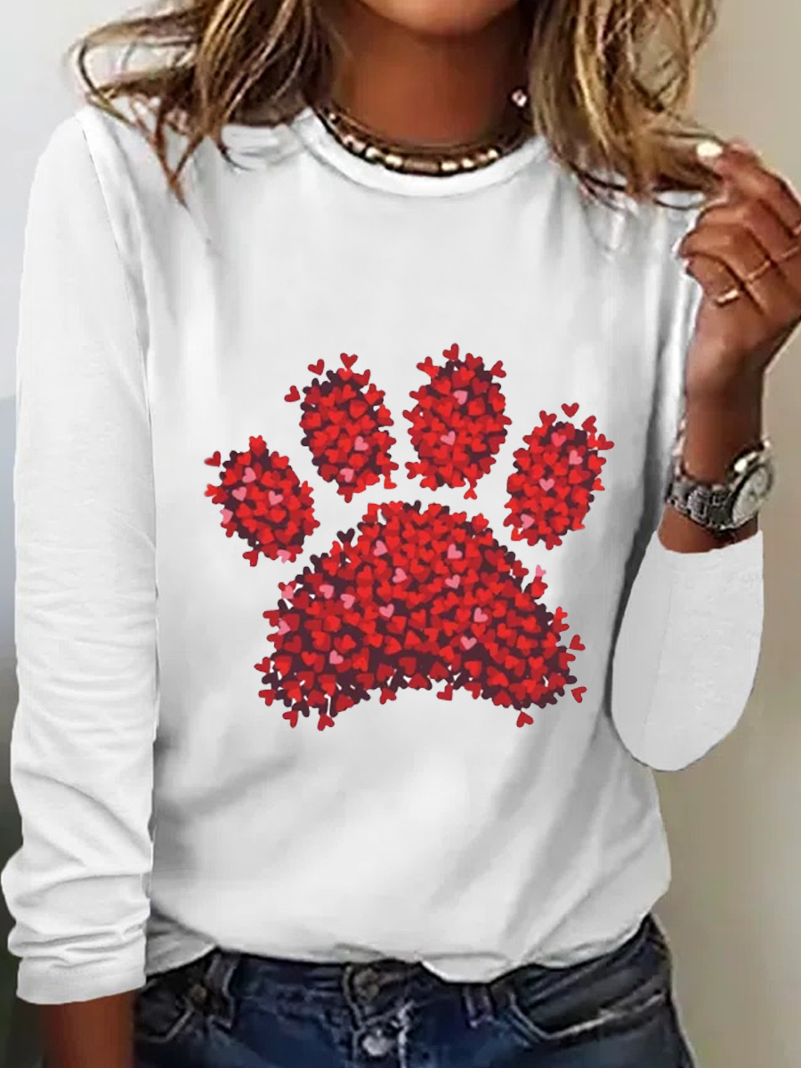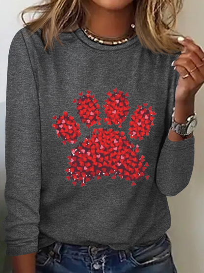 Cotton-Blend Simple Dog Heart Regular Fit Long Sleeve Shirt