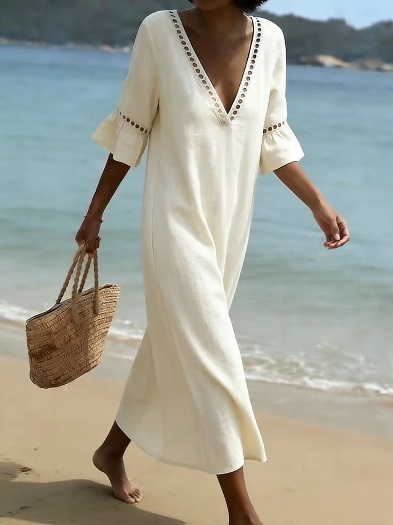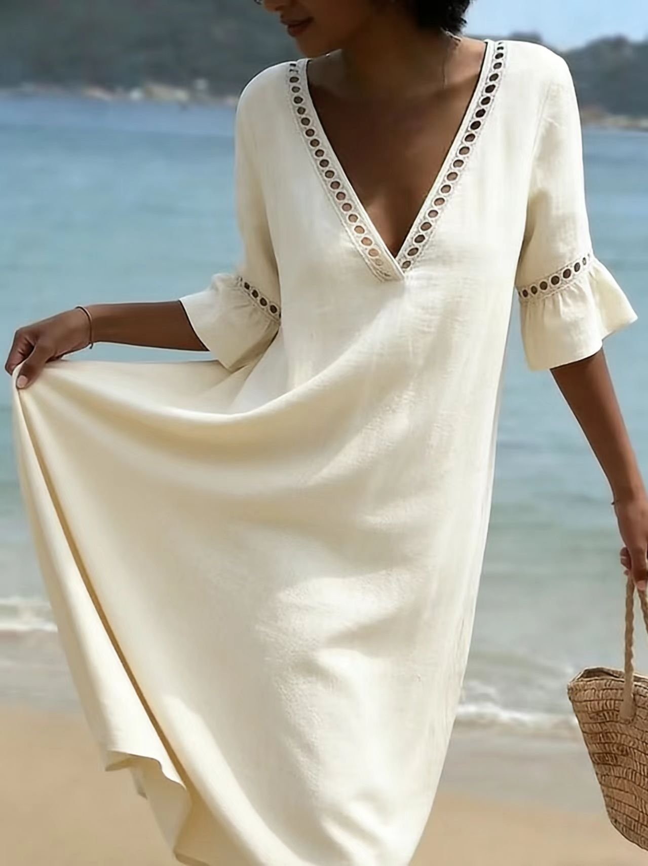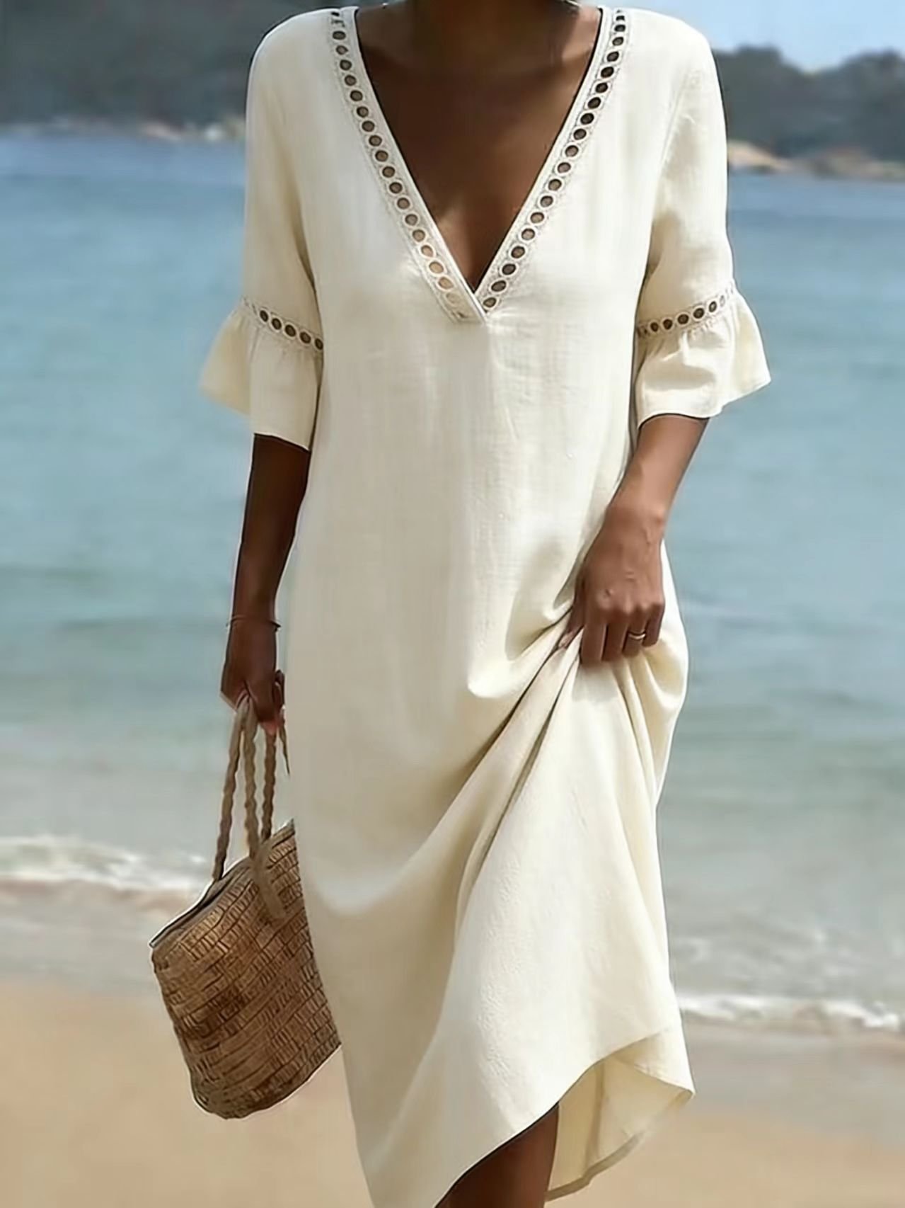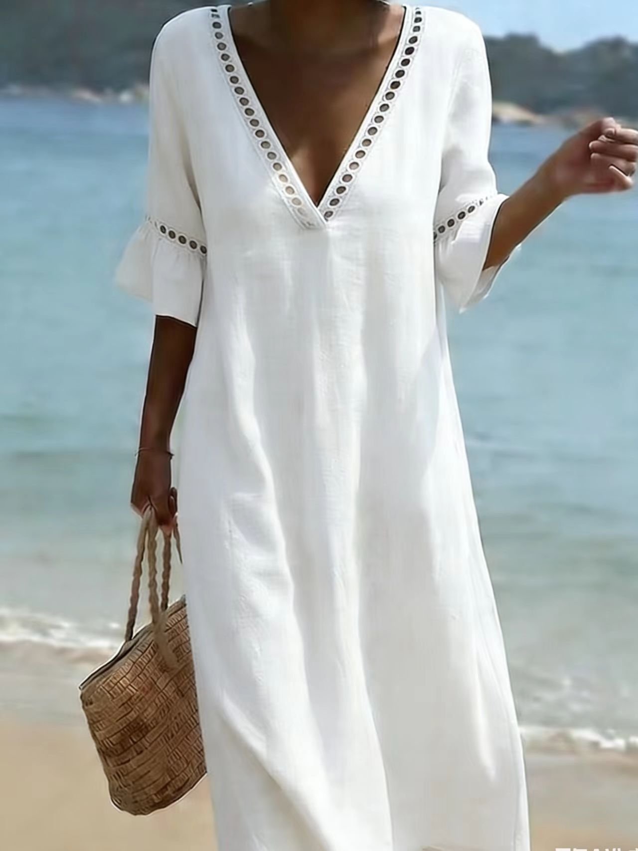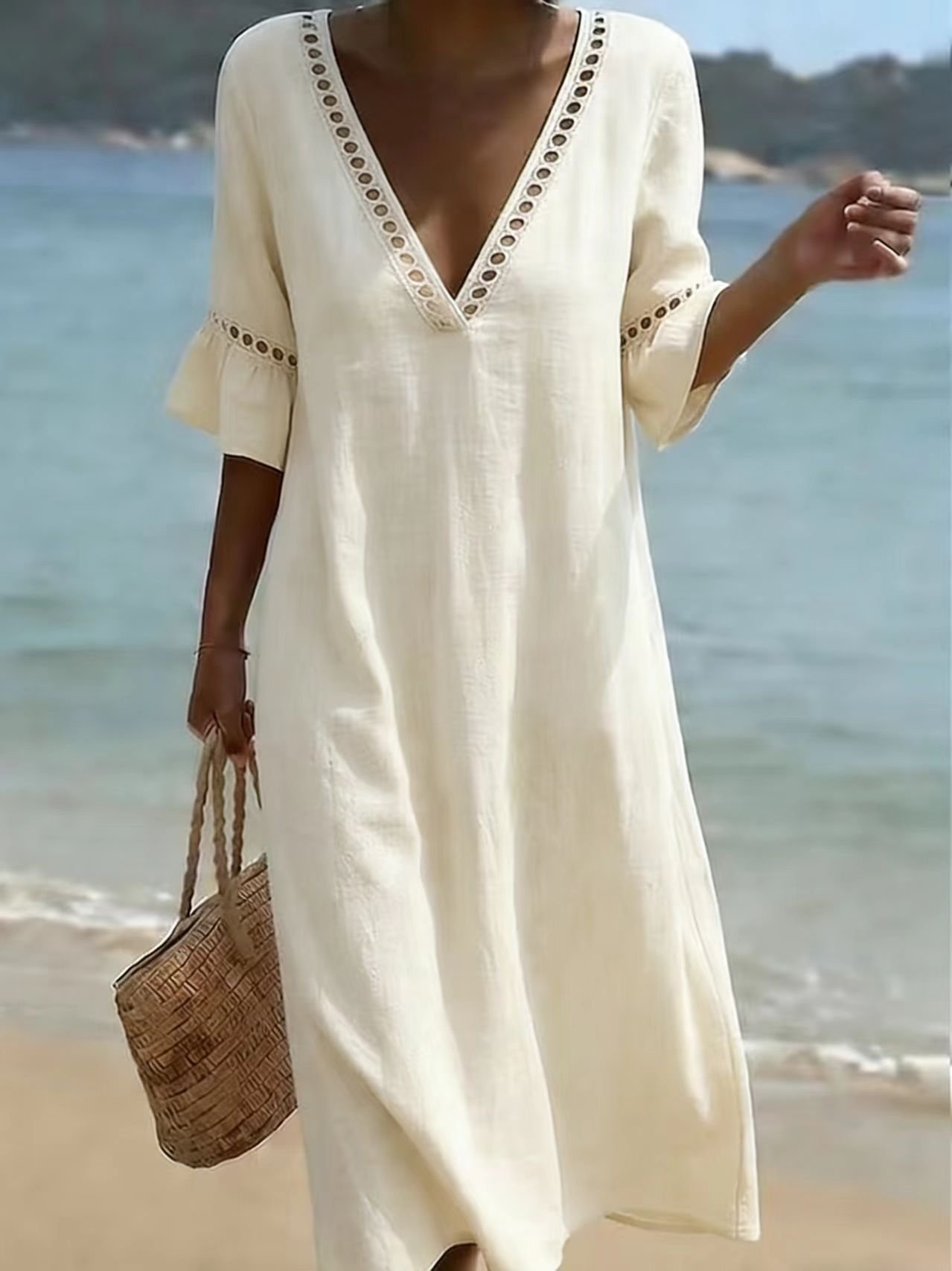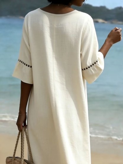 Cotton Simple Plain Loose Dress With No