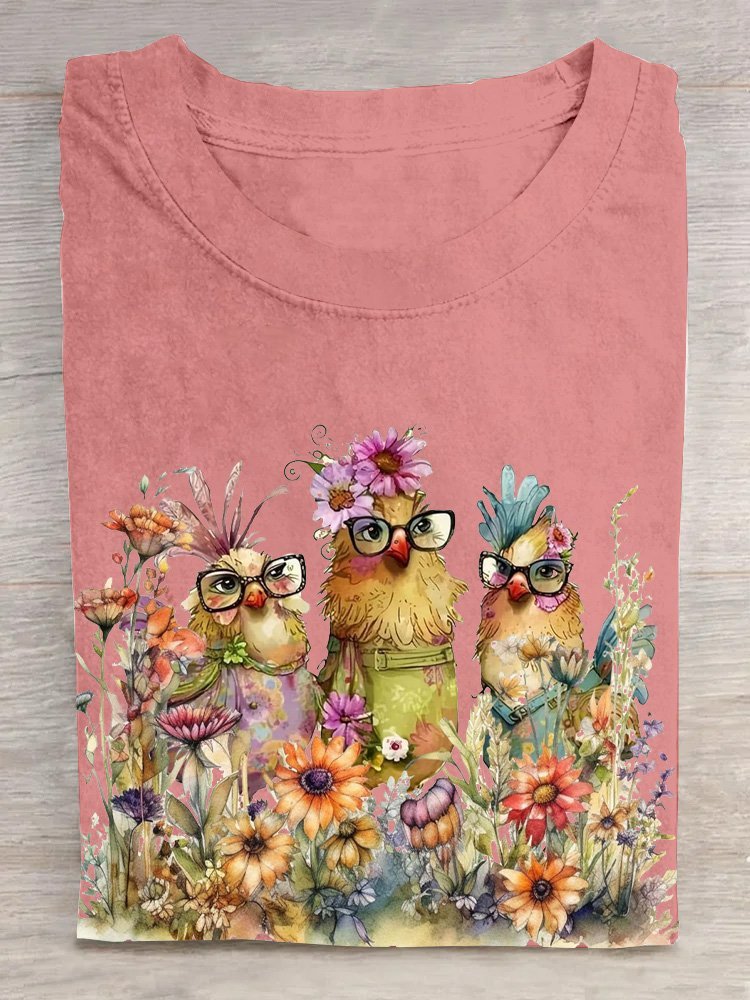 Crew Neck Loose Casual Chicken T-Shirt