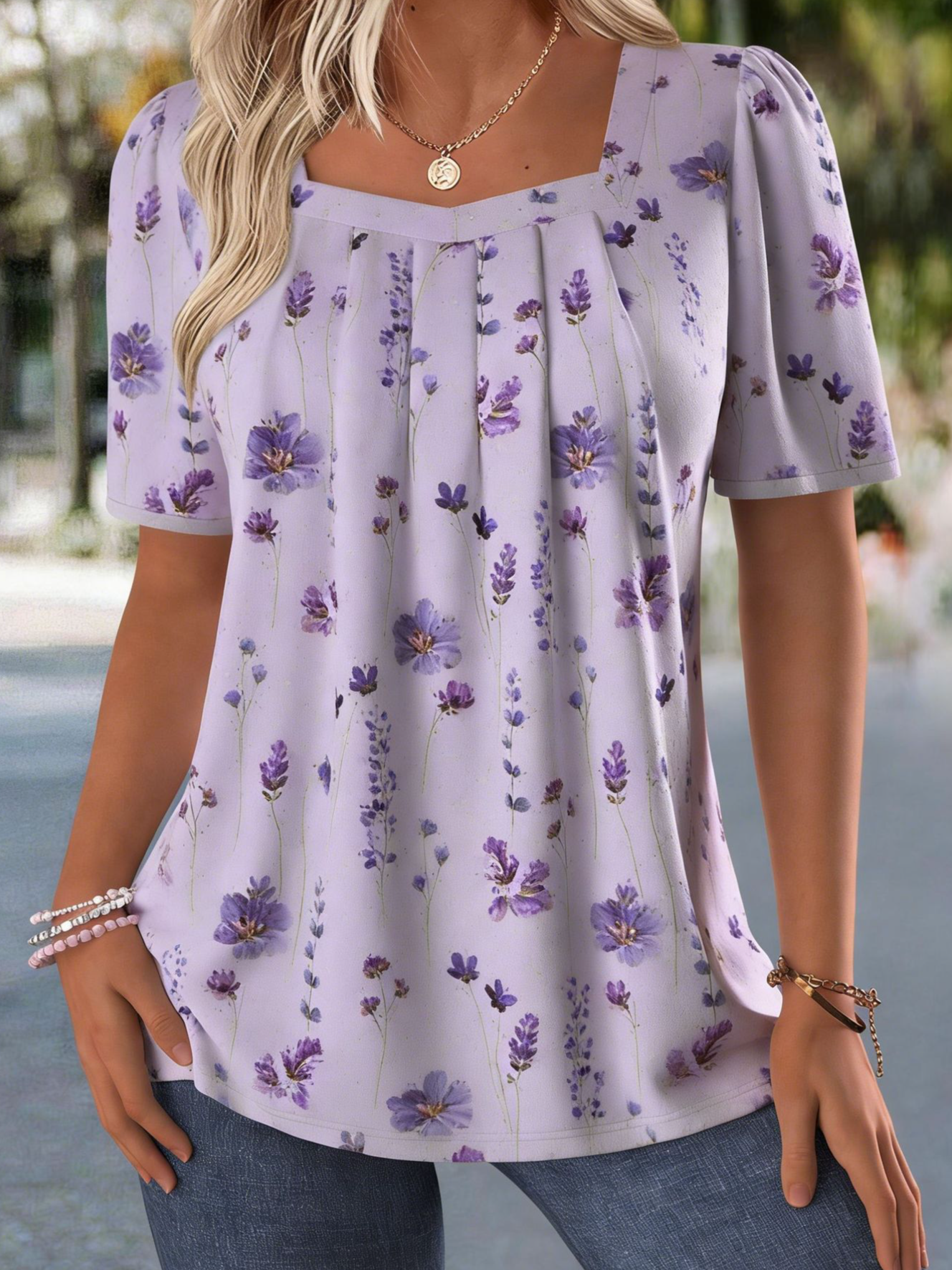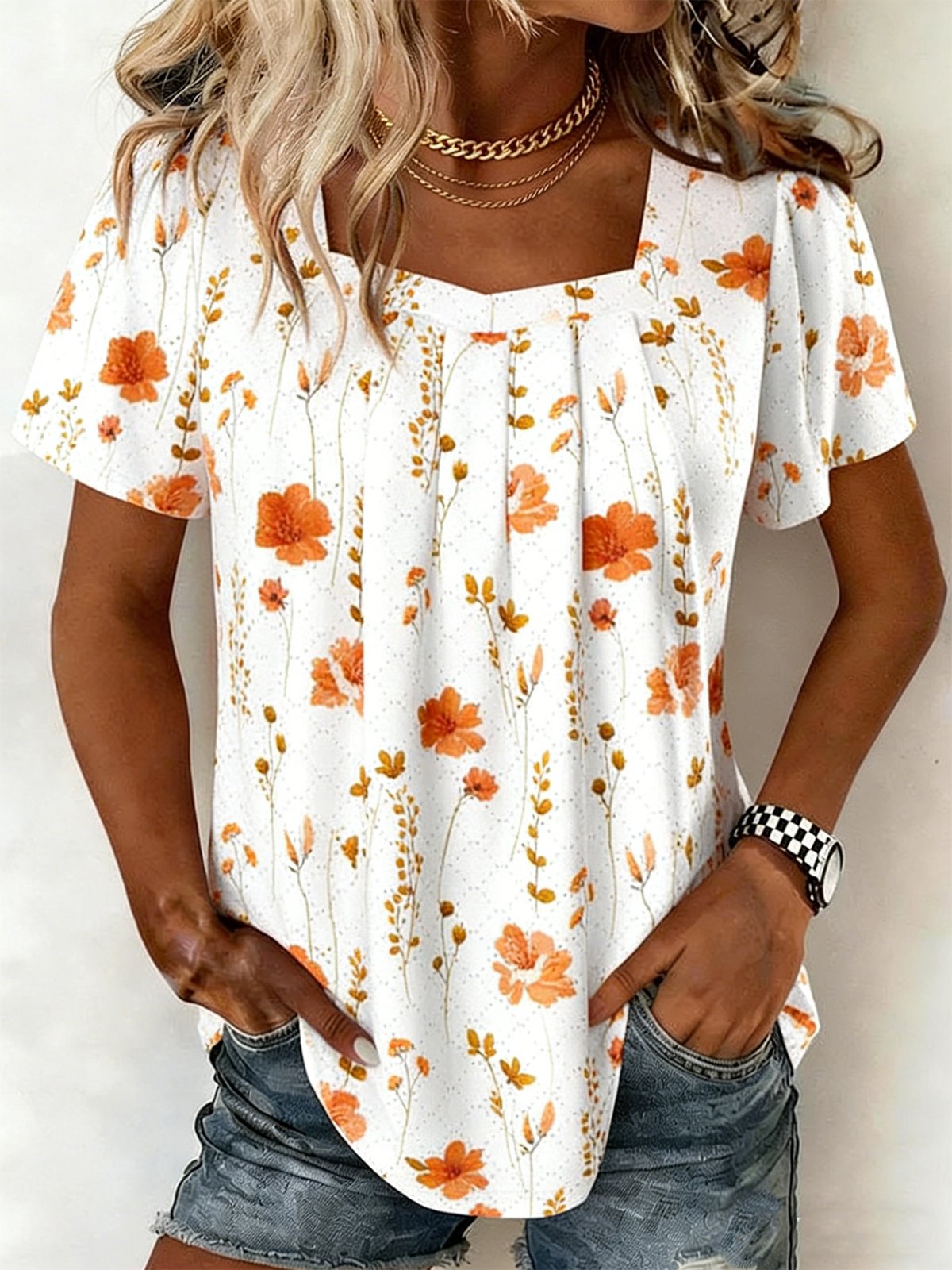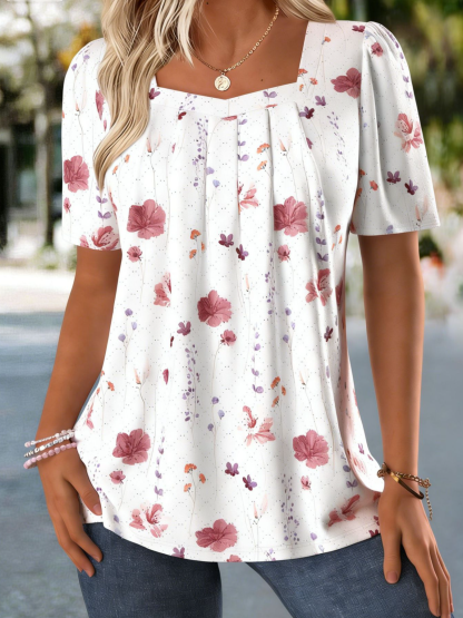 Elegant Square Neck Floral T-Shirt