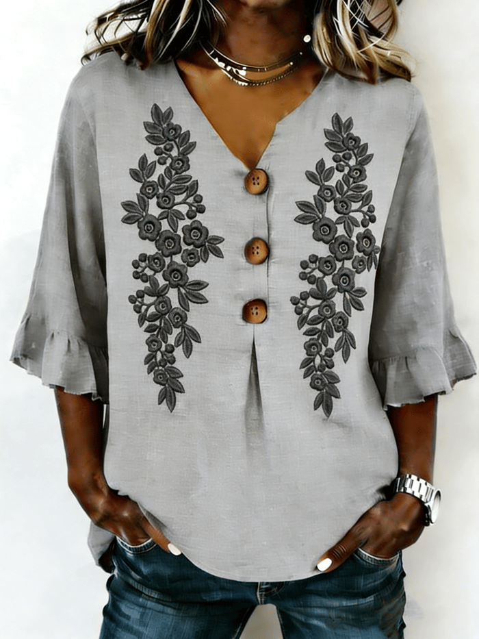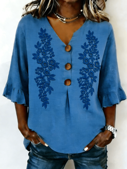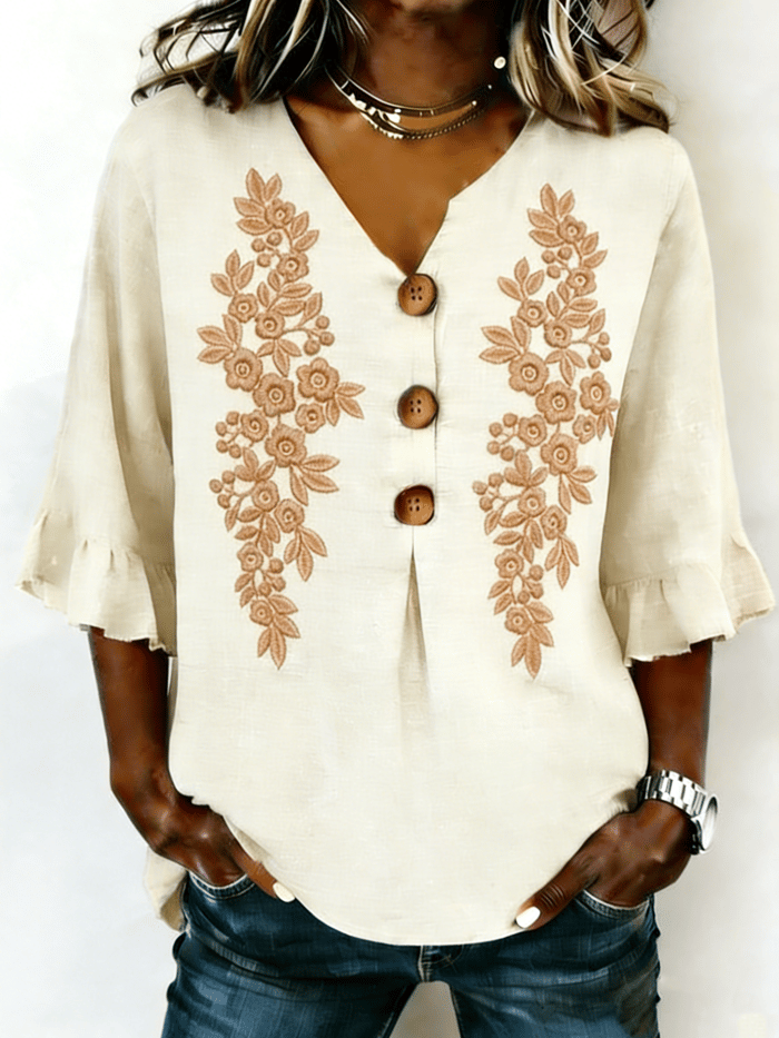 Floral Elegant Others Cotton And Linen Shirt