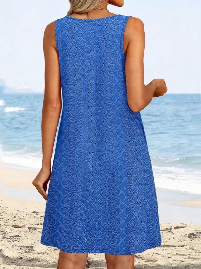 Geometric V Neck Sleeveless Pocket Beach Halter Top Dress