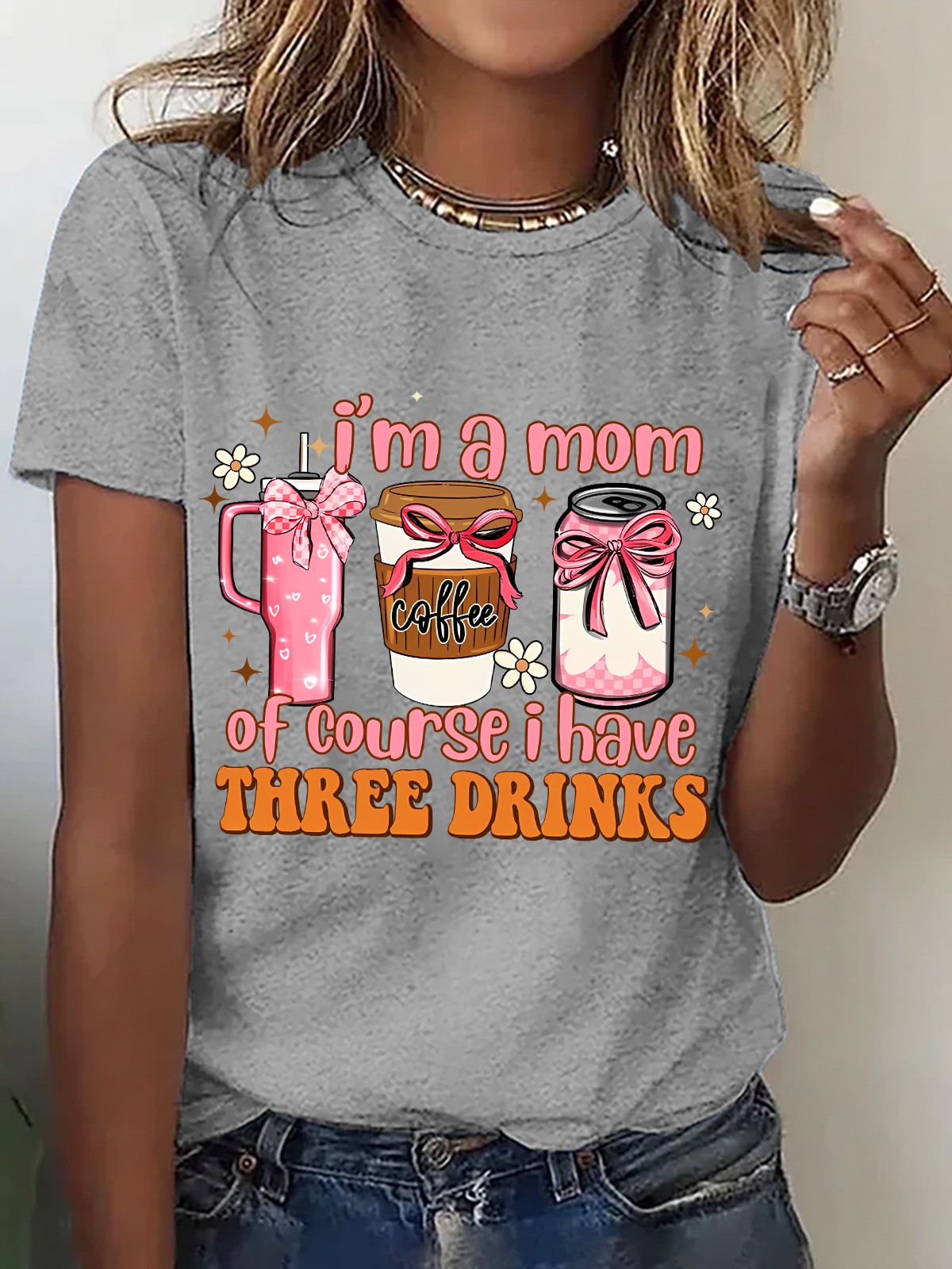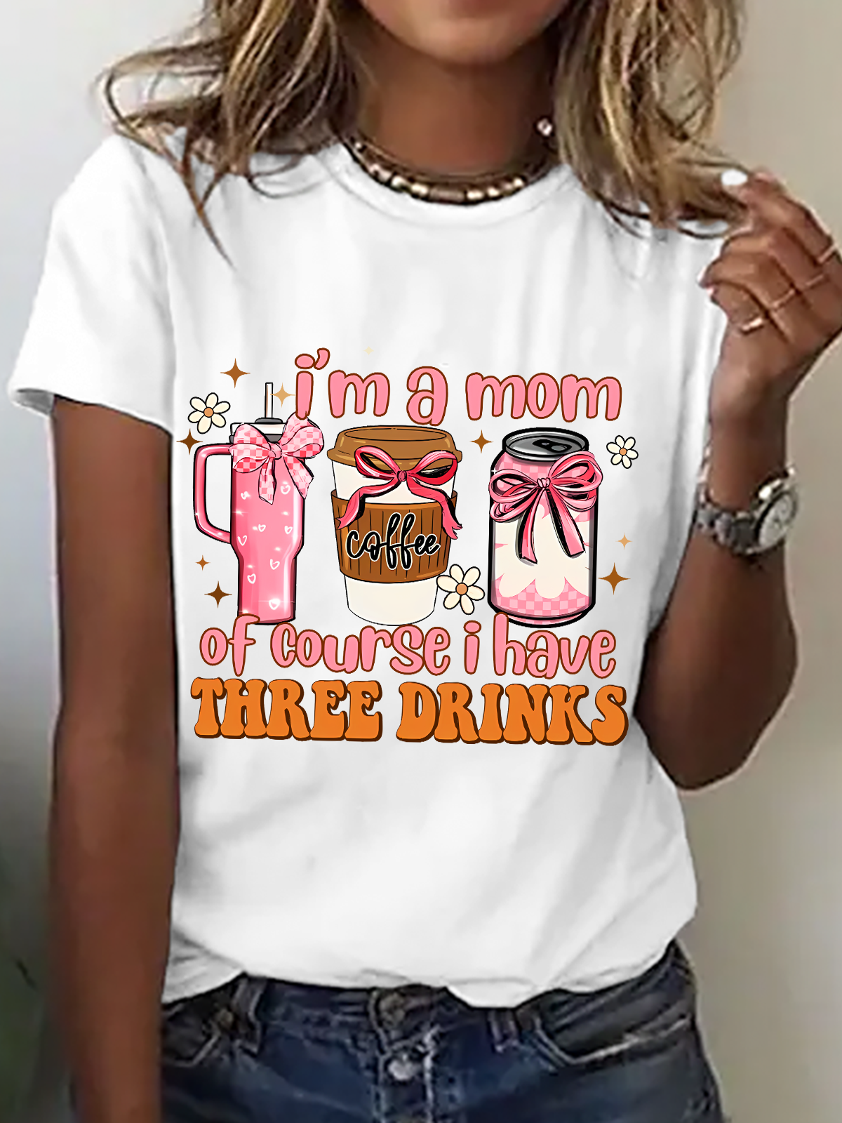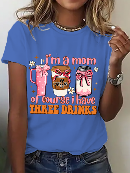 I Am A Mom Of Course I Have 3 Drinks Funny Mom Cotton T-Shirt