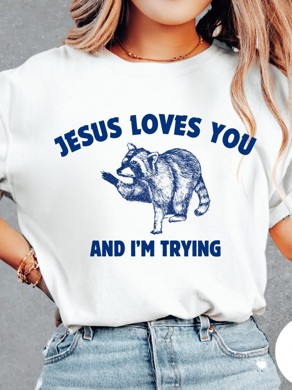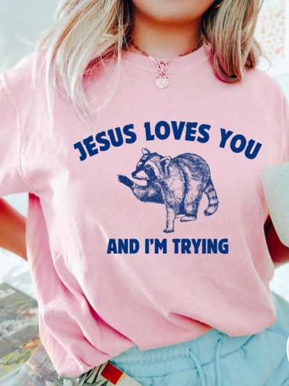 Jesus Loves You and I'm Trying .Funny Christian Women's Short Sleeve T-Shirt