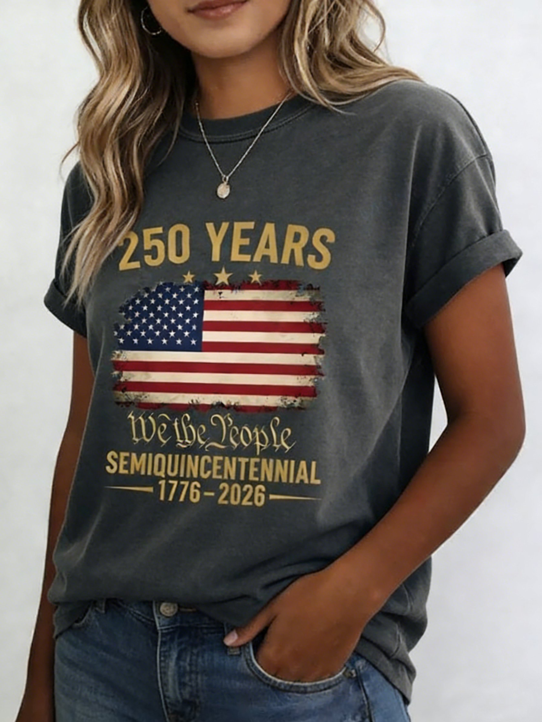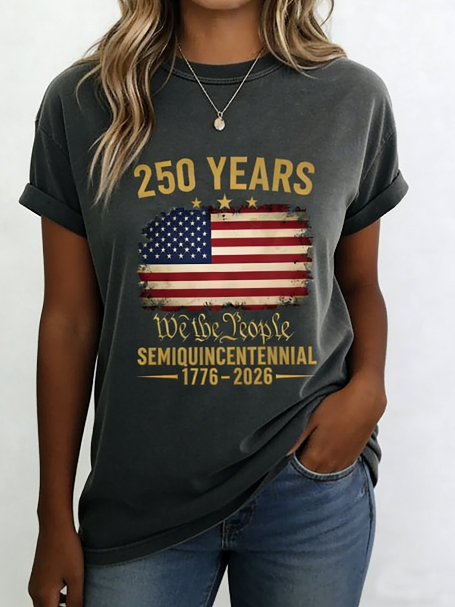 Letter Print Short Sleeve Crew Neck Casual Cotton T-Shirt