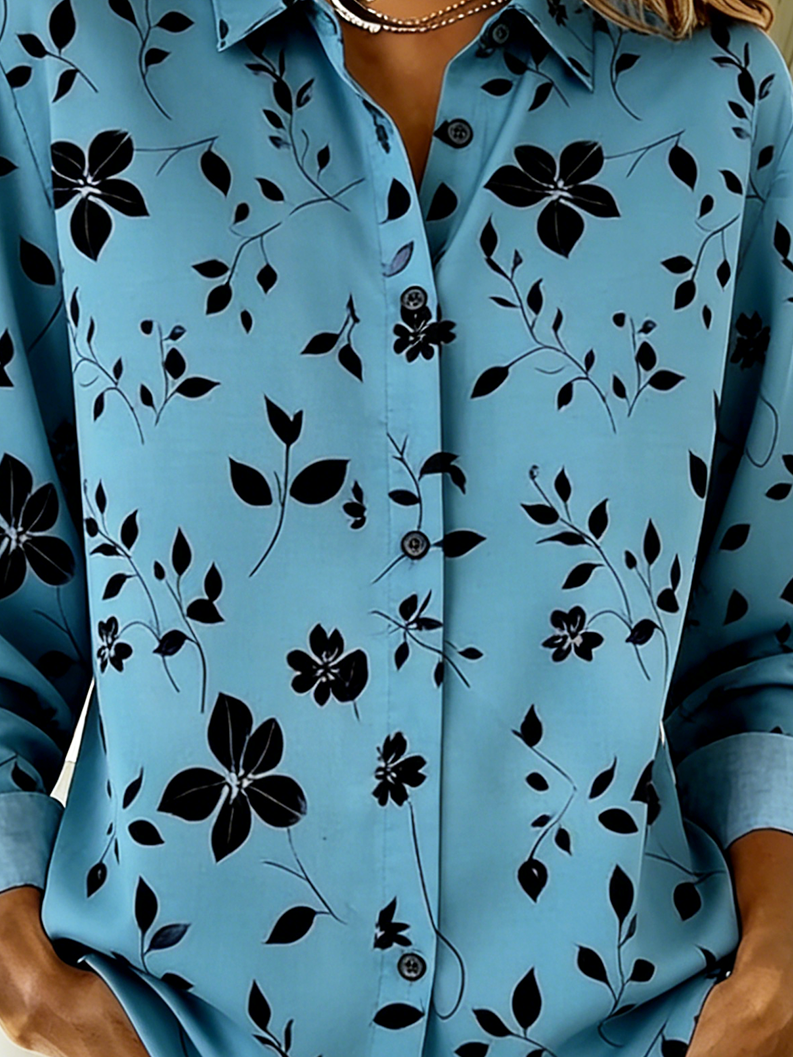 Loose Botanical Pattern Vintage Shirt Collar Shirt