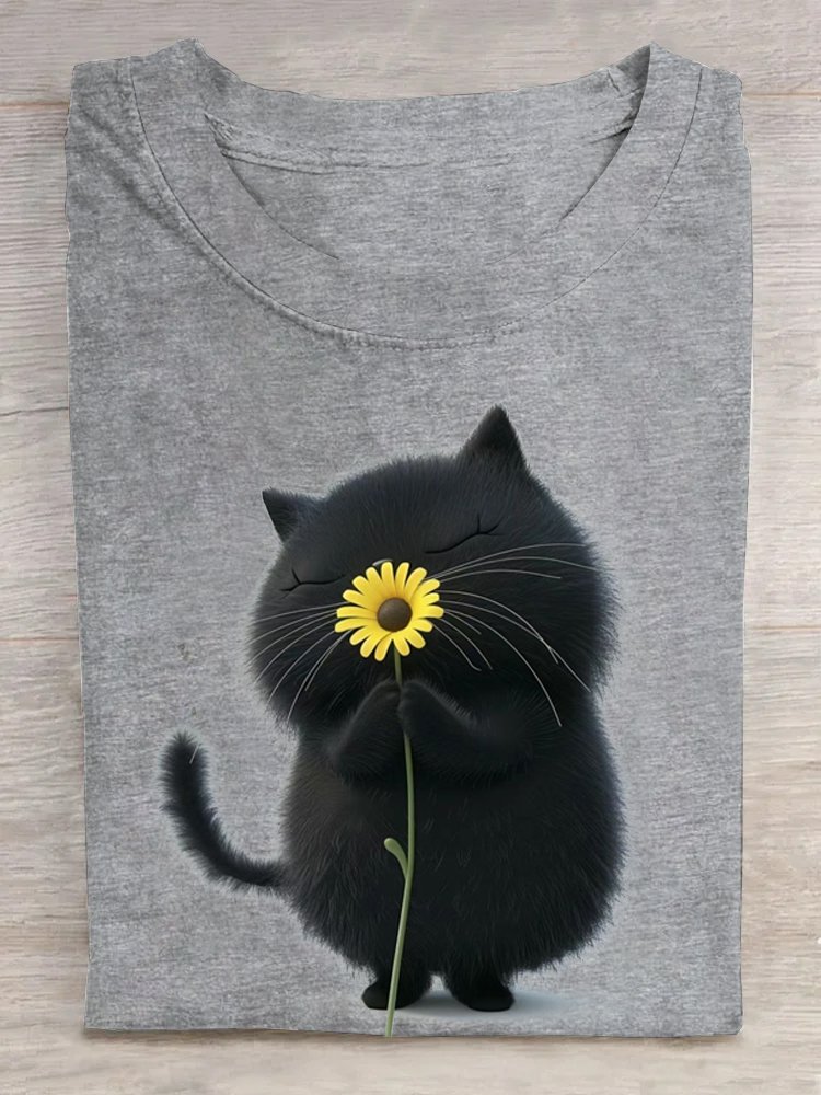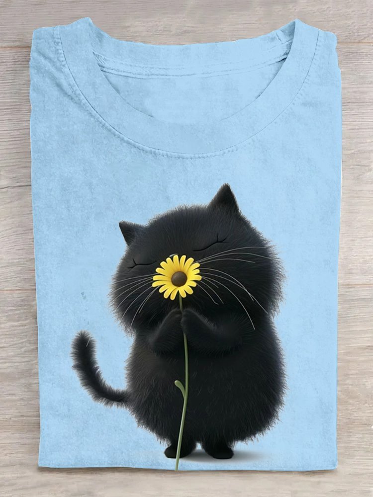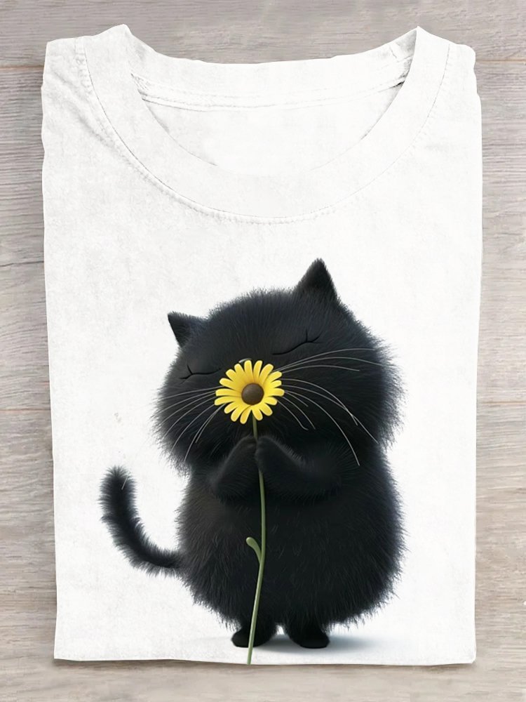 Loose Casual Cat Cotton T-Shirt