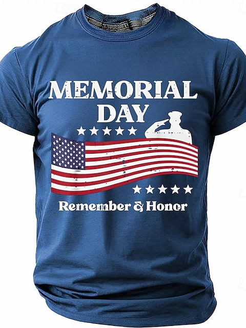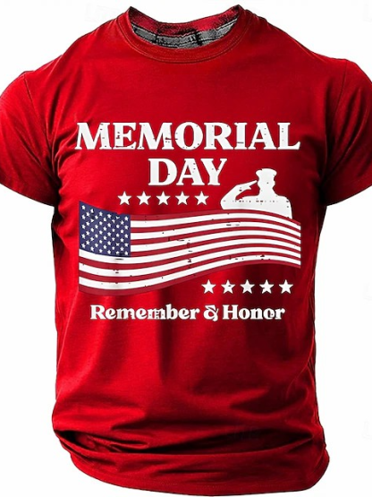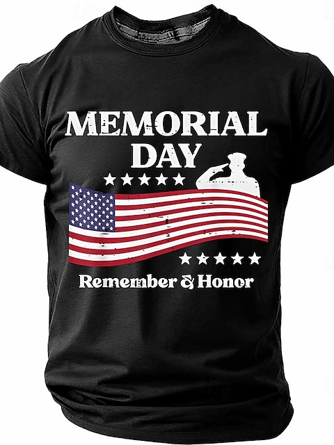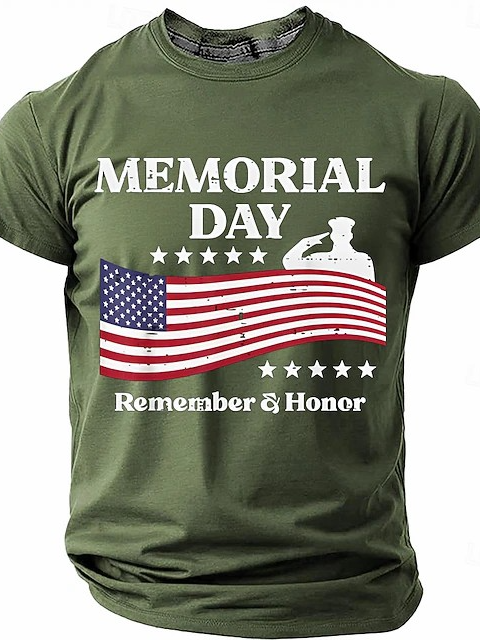 Memorial Day Remember & Honor Men's American Flag Saluting Soldier Patriotic Vintage Graphic T Shirt