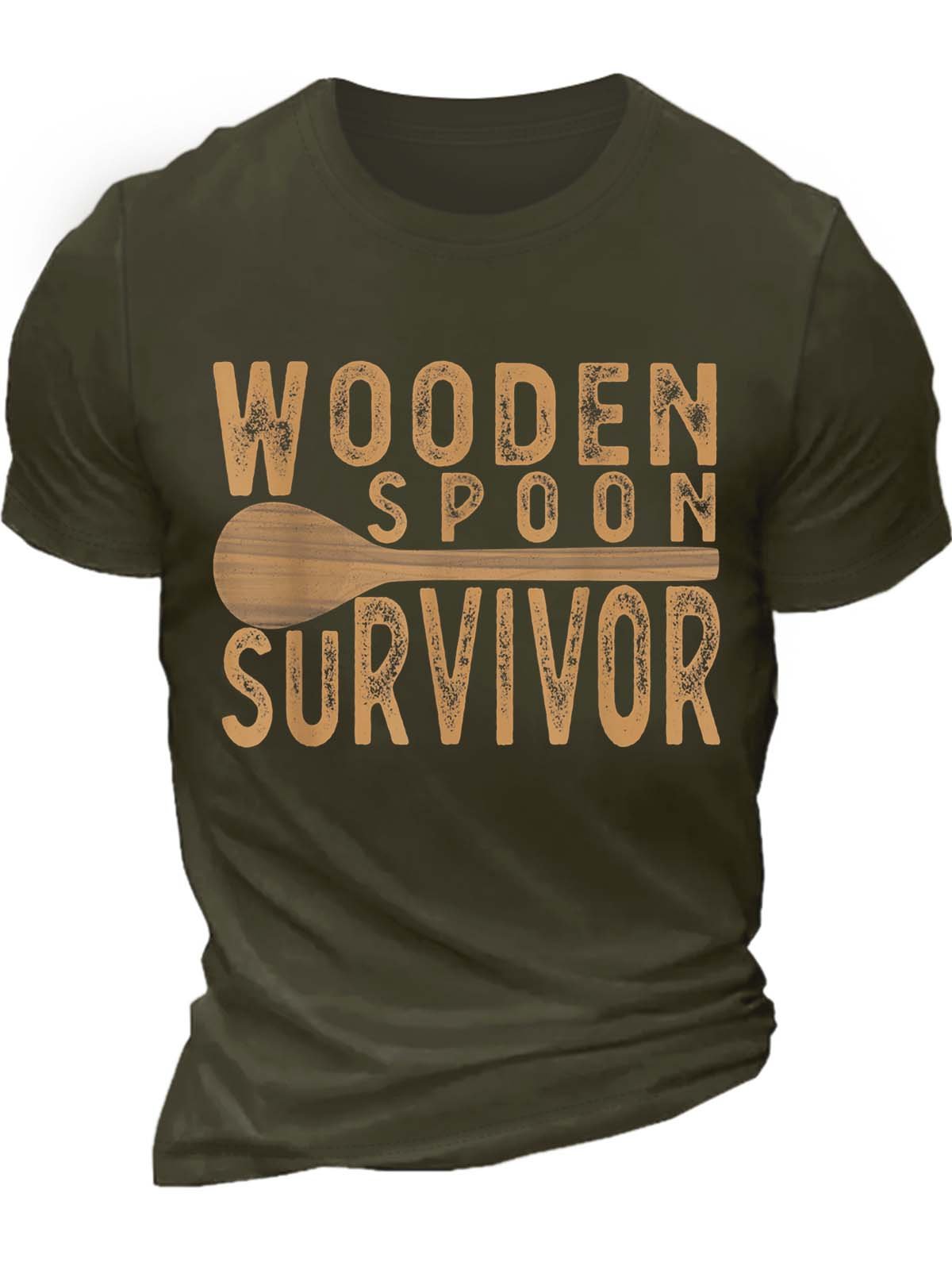 Men’s Wooden Spoon Survivor Casual Text Letters Cotton T-Shirt
