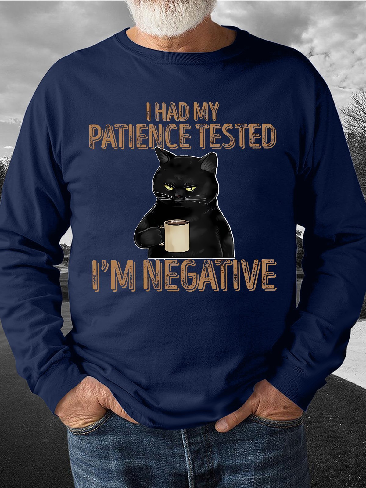 Men's I Had My Patience Tested I Am Negative Funny Graphic Printing Loose Cotton-Blend Casual Text Letters Sweatshirt