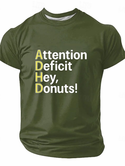 Men's ADHD Attention Deficit Hey Donuts Funny Sarcastic Humor Slang Short Sleeve T-shirt