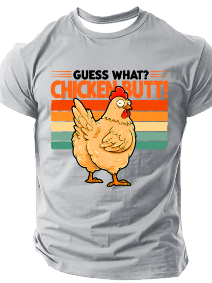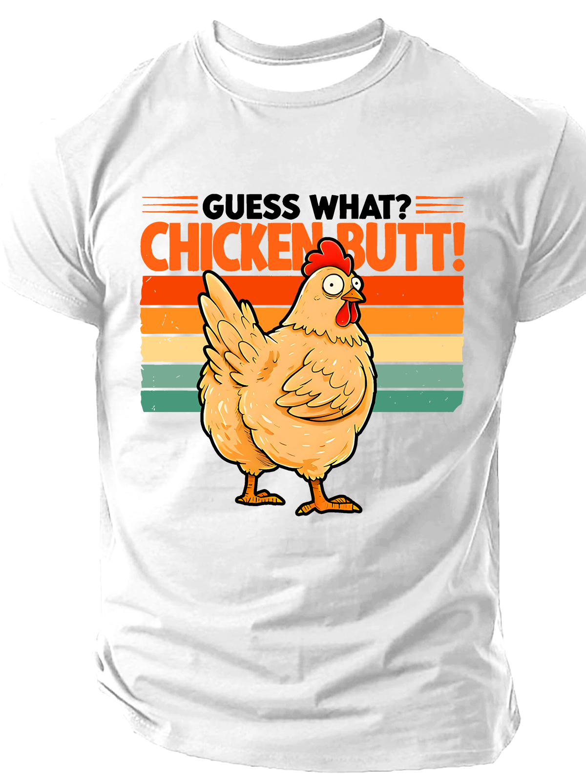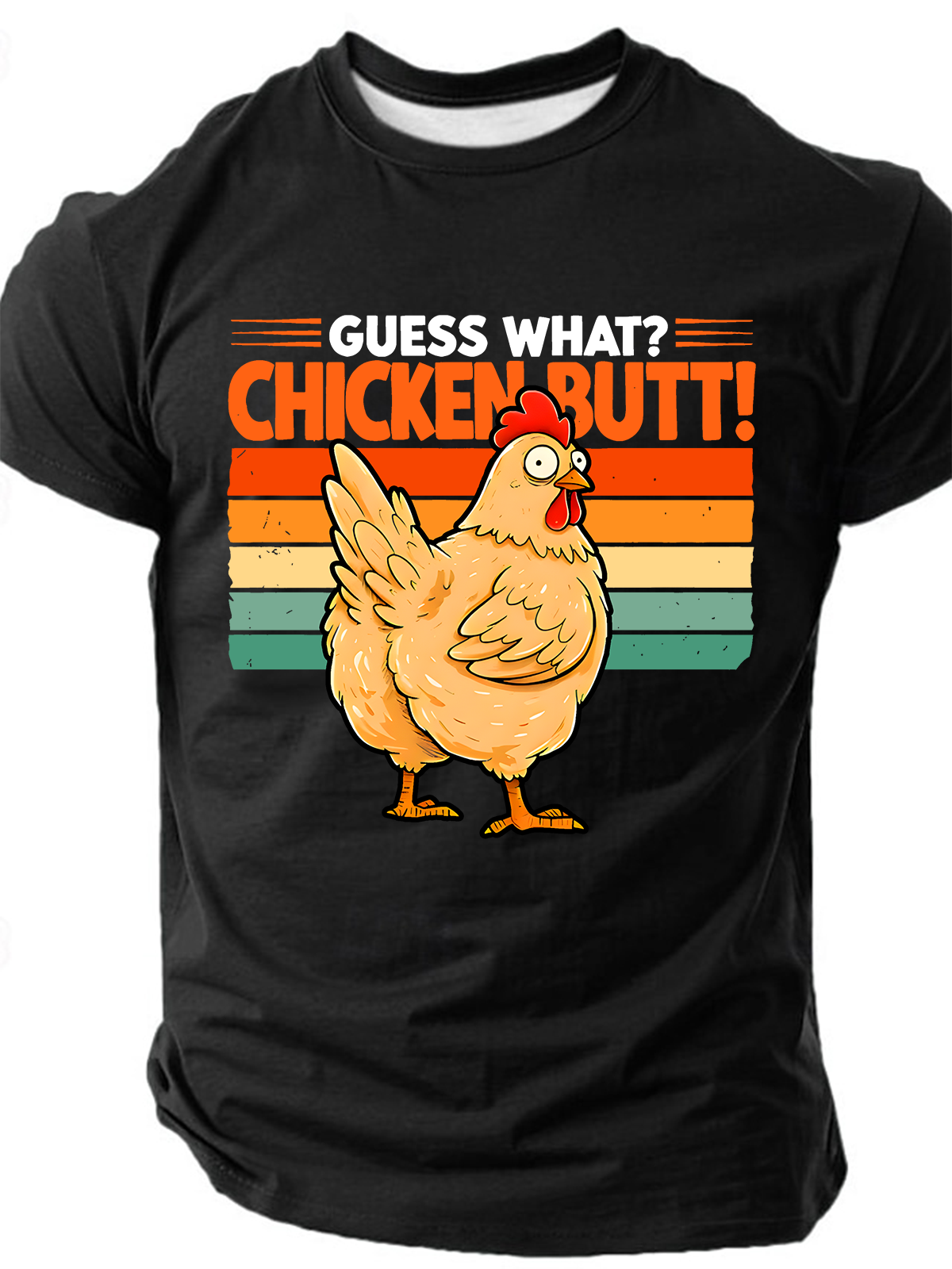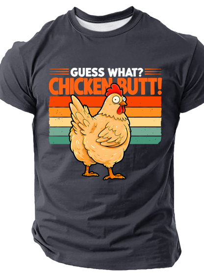 Men's Funny Guess What Chicken Butt Humorous Farm Animal Pun Design Short Sleeve T-shirt