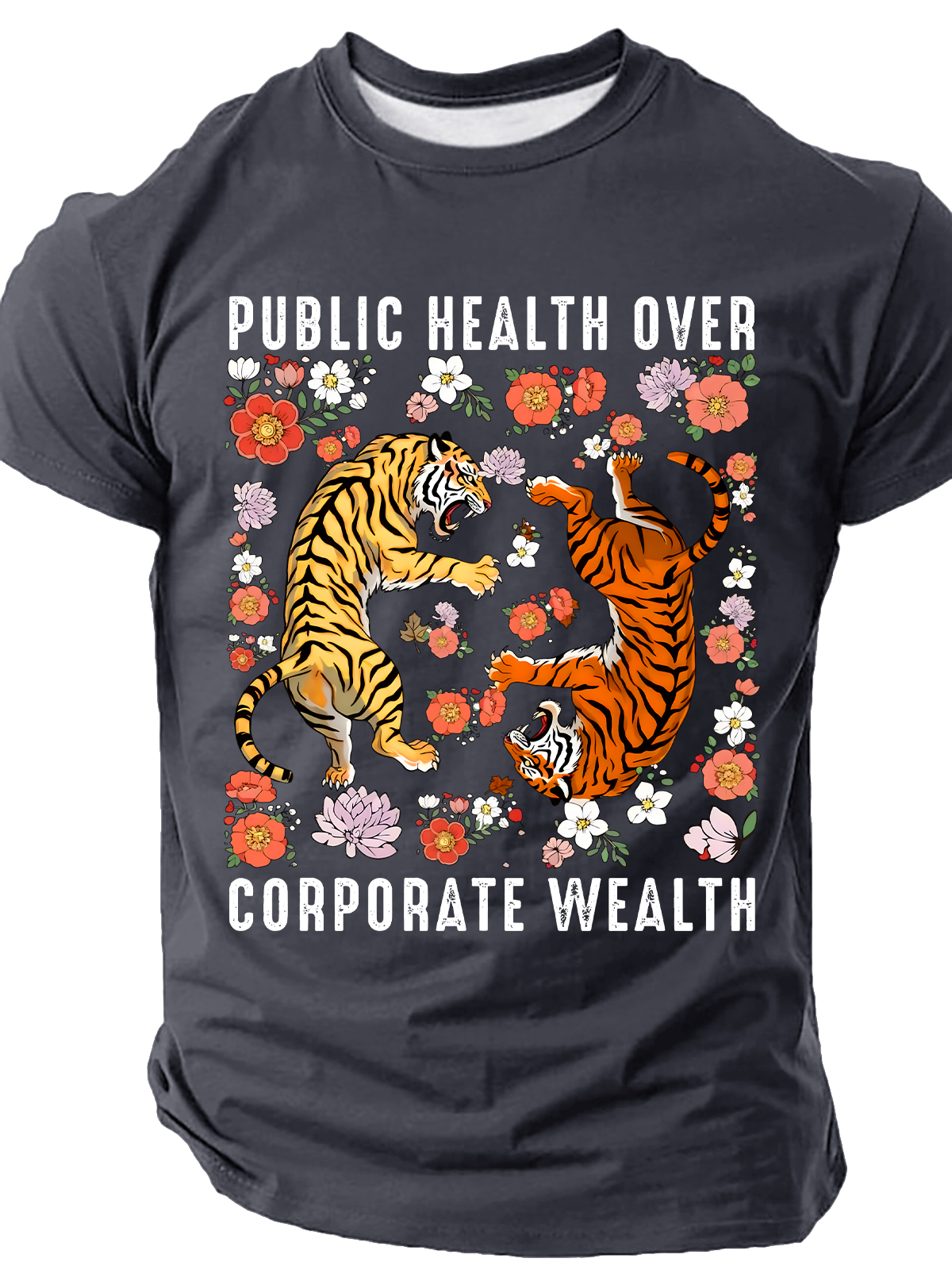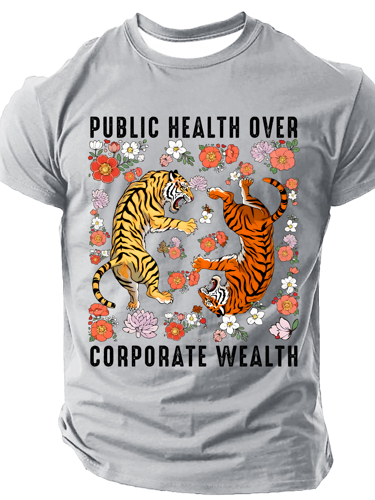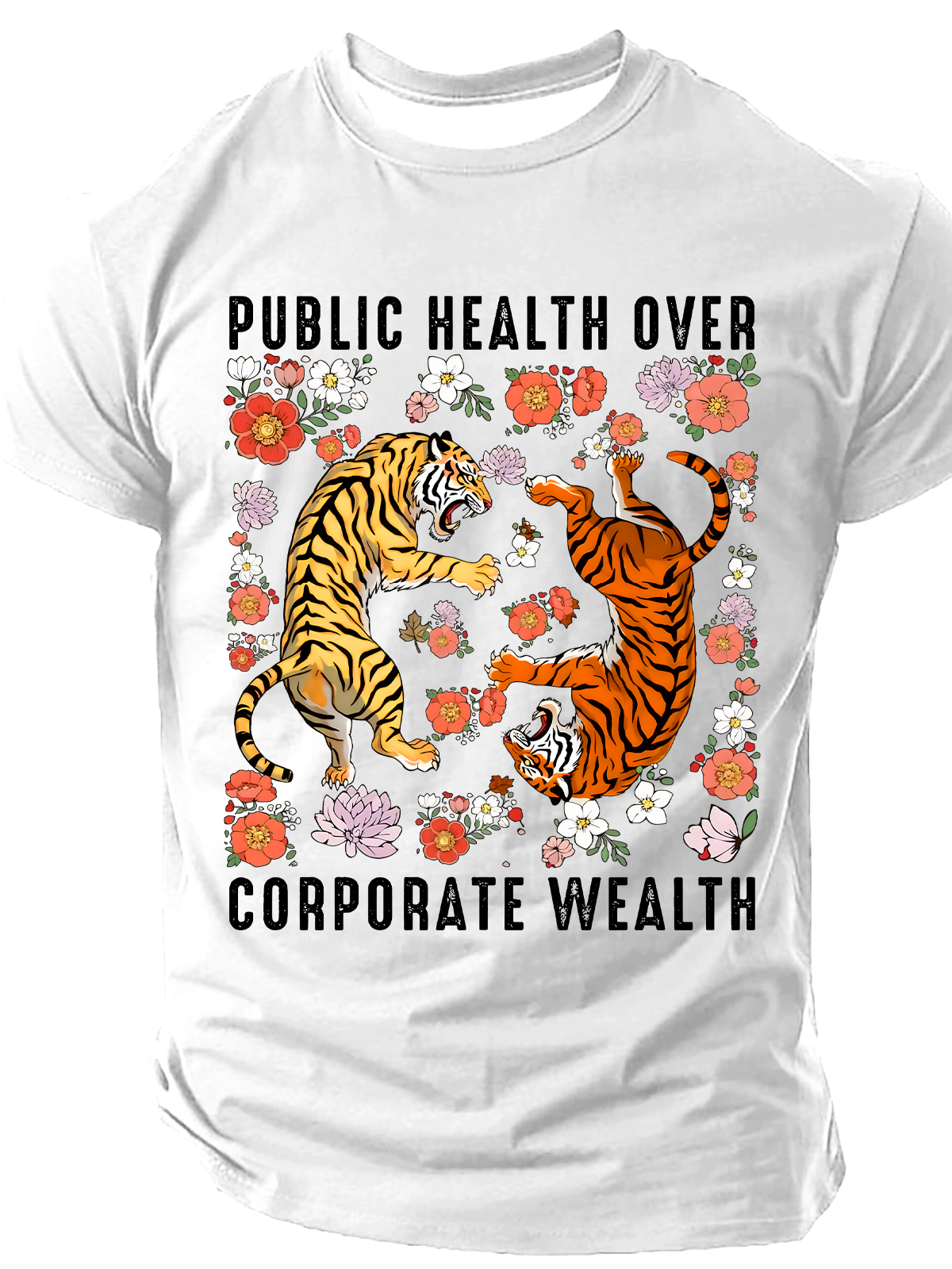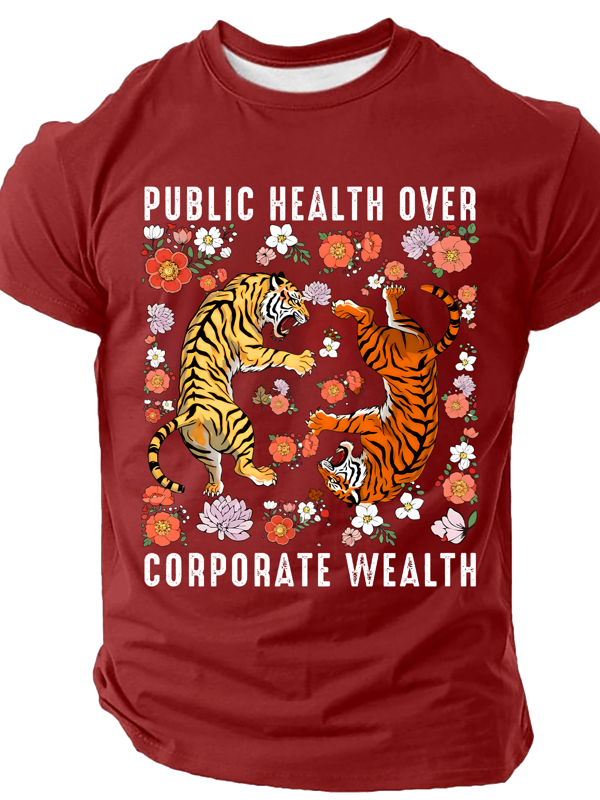 Men's Tiger Boho: Public Health Over Corporate Wealth, Social Justice Short Sleeve T-shirt