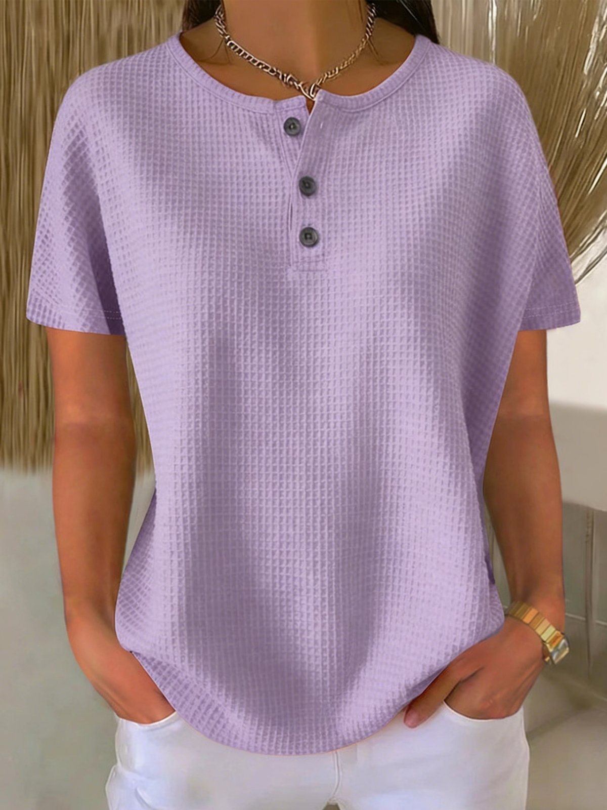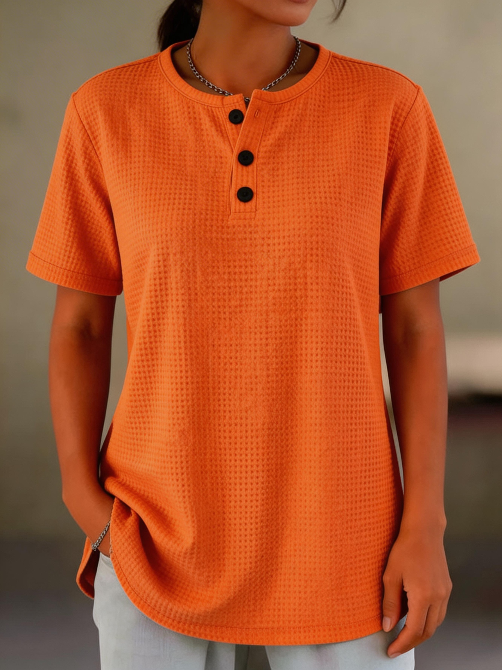 Others Loose Casual Plain T-Shirt