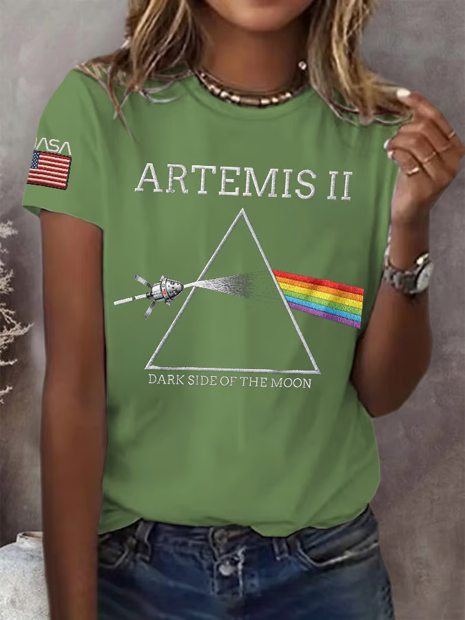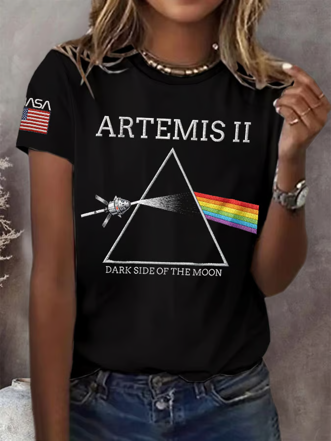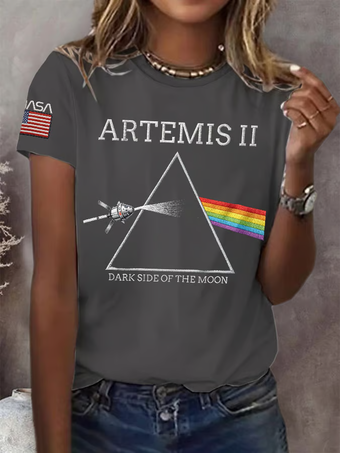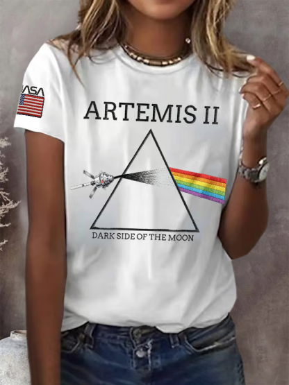Retro Artemis II Dark Side Of The Moon Print T-Shirt