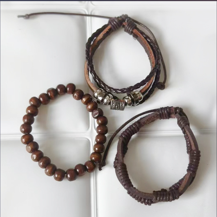 Retro Street Cowboy Leather Bracelet Niche Korean Trend Multi-layer Bodhi Wood Bracelet Adjustable Bracelet