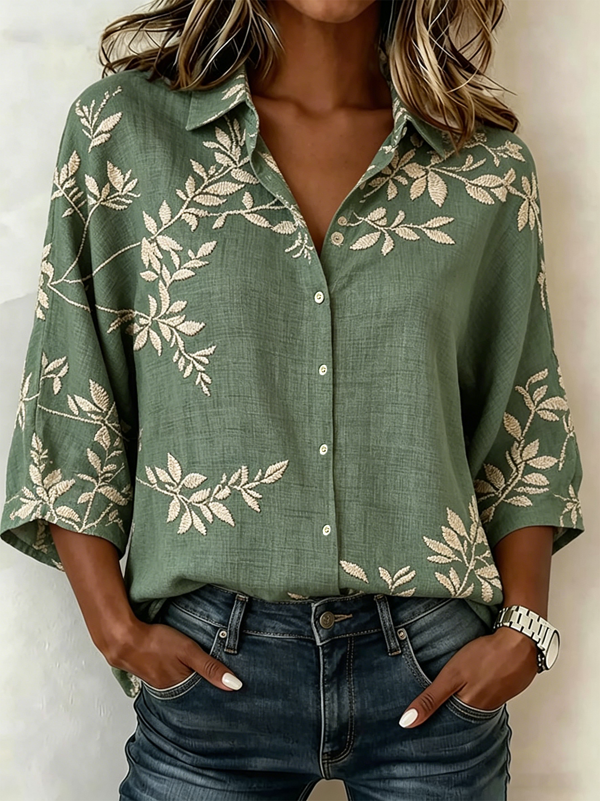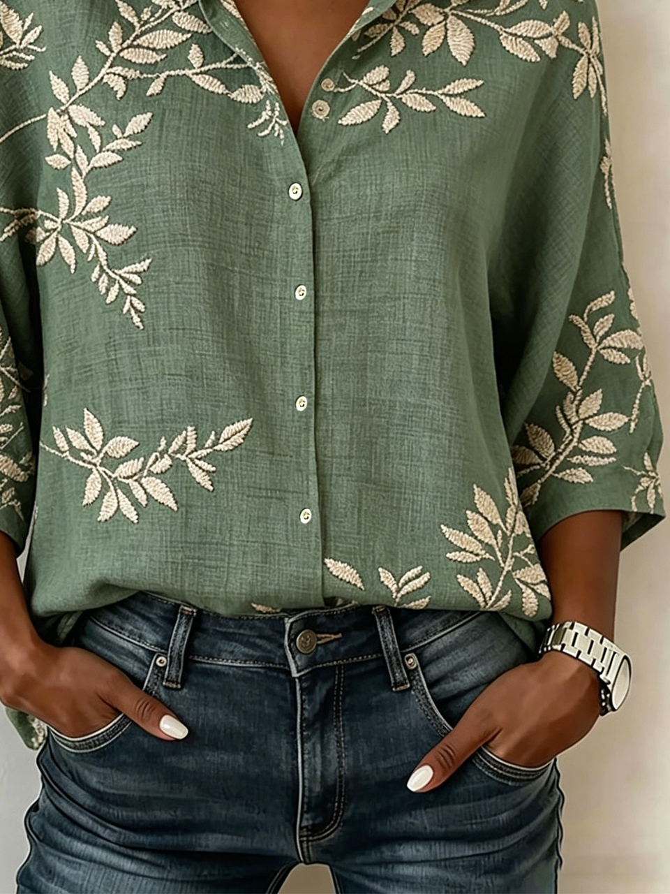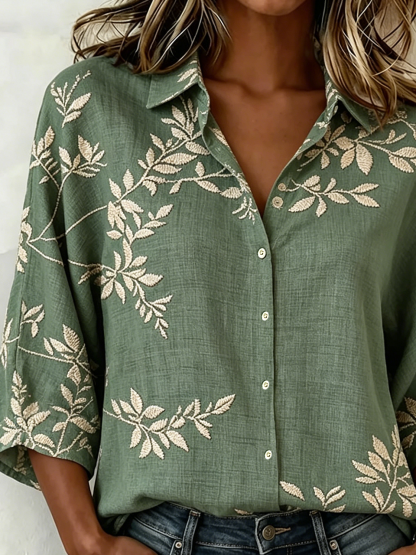 Shawl Collar Loose Vintage Cotton And Linen Blouse