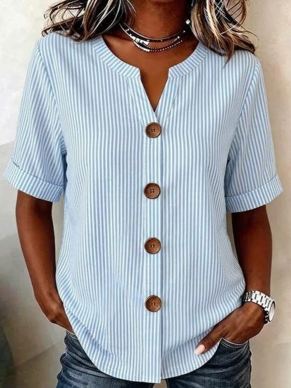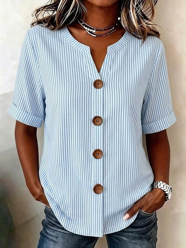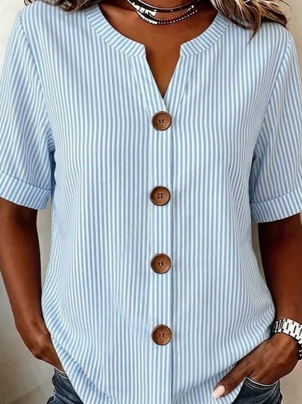 Striped Linen Blend Stand Collar Simple Loose Shirt