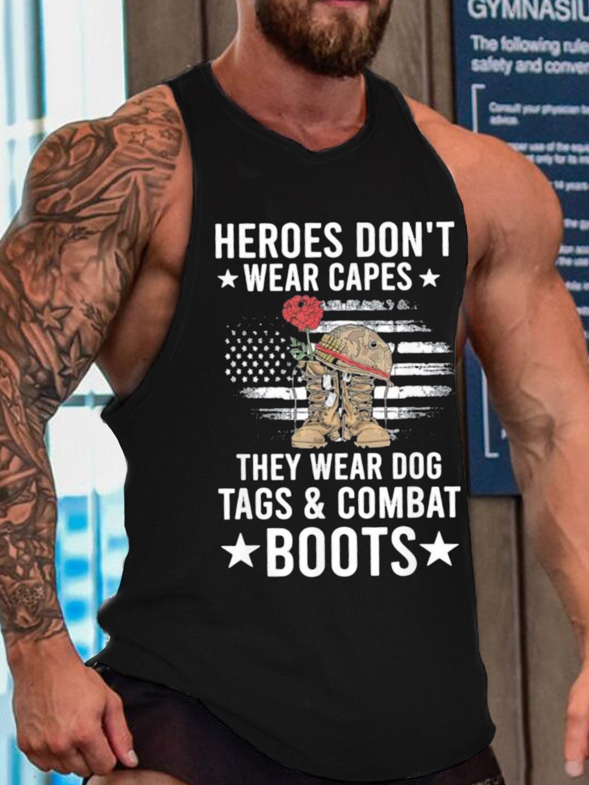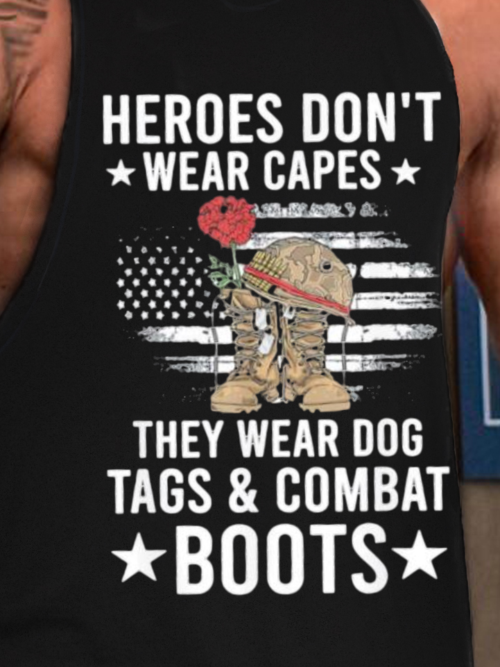 Top heroes Don’t Wear Capes, They Wear Dog Tags & combat boots,Us Flag Crew Neck Casual Tank Top