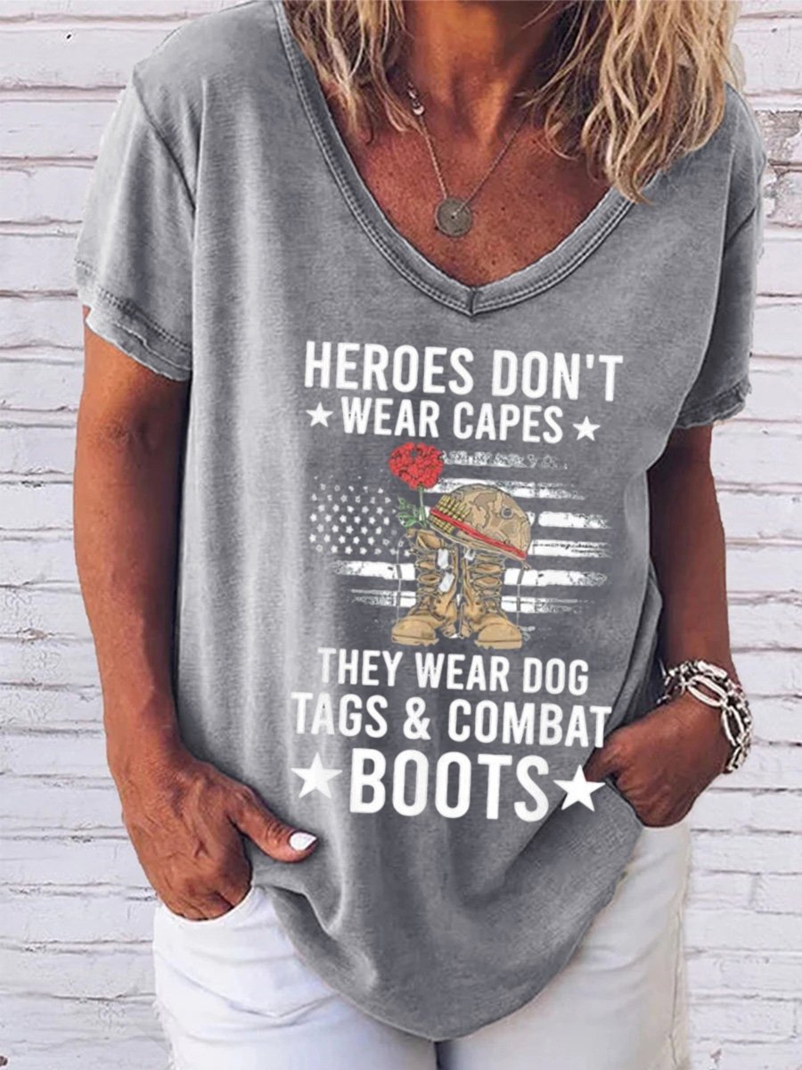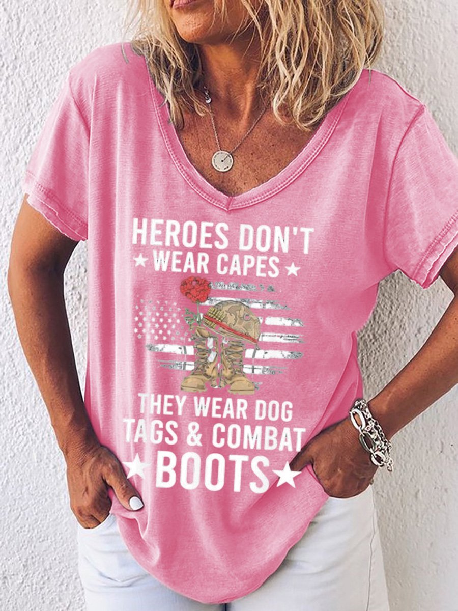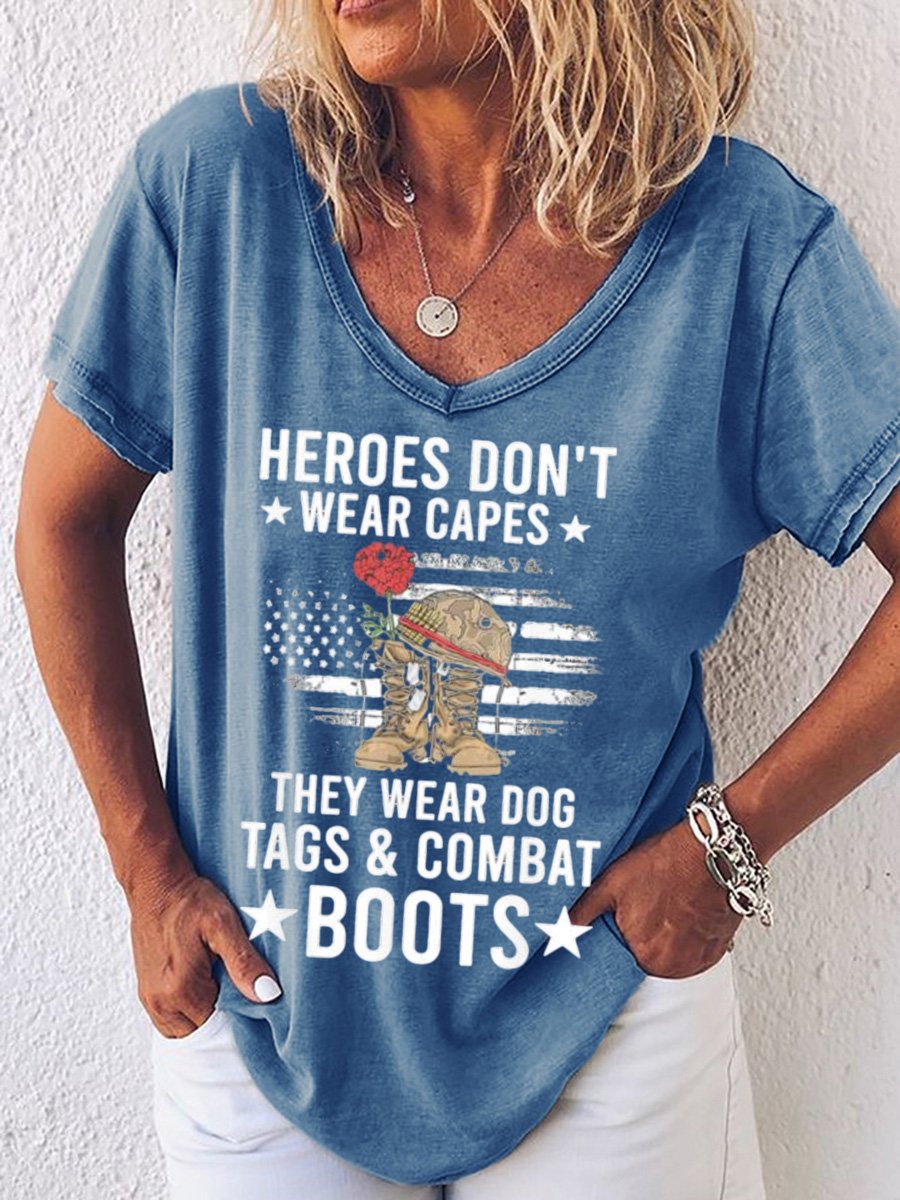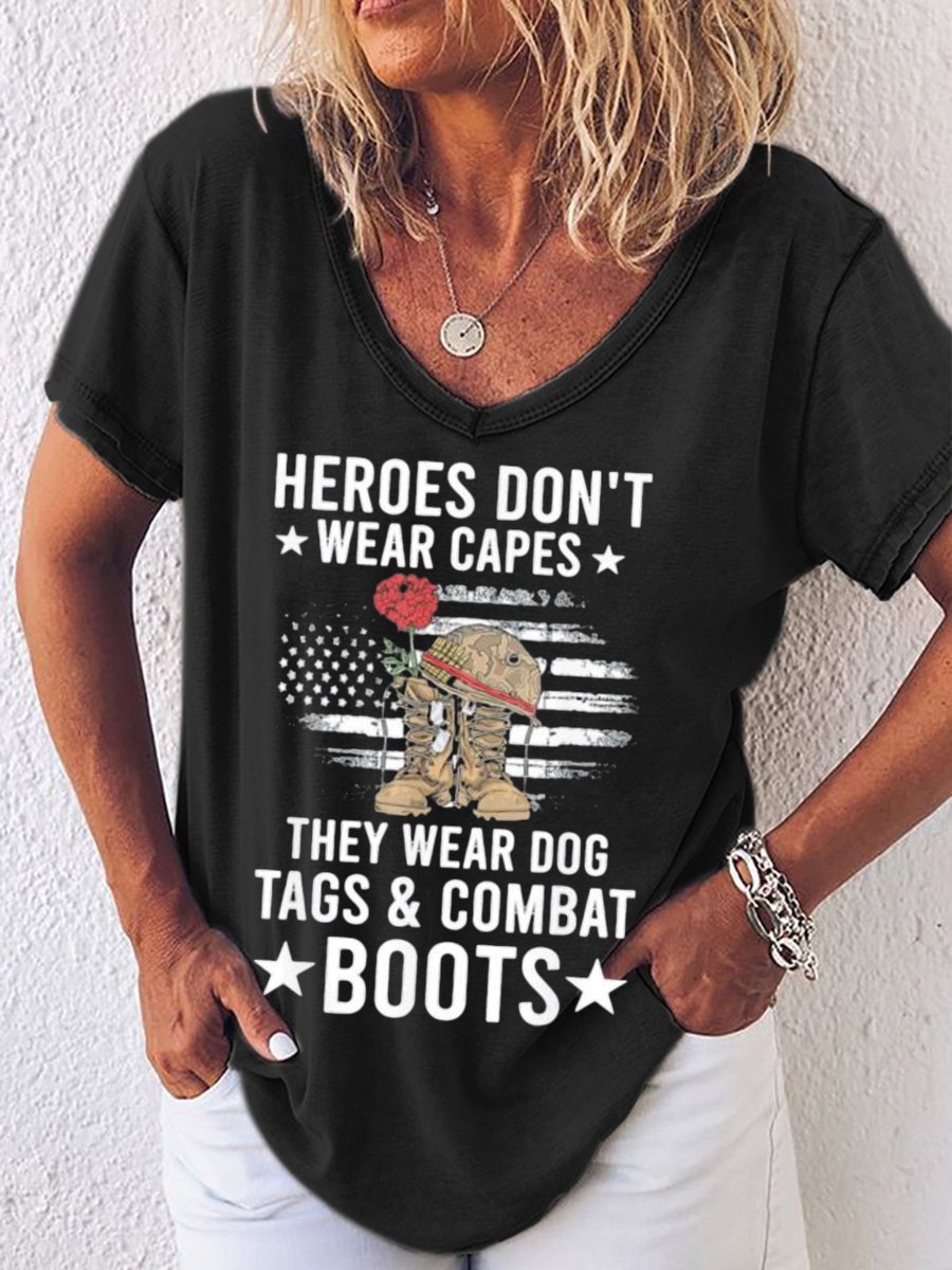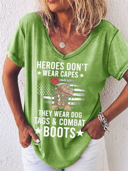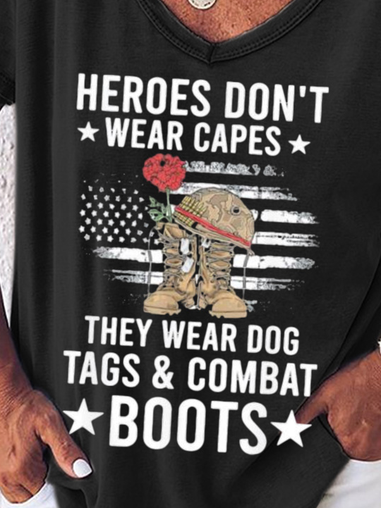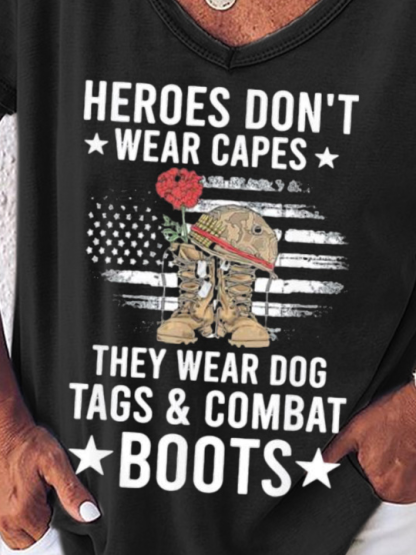 Top heroes Don’t Wear Capes, They Wear Dog Tags & combat boots,Us Flag V Neck T-Shirt