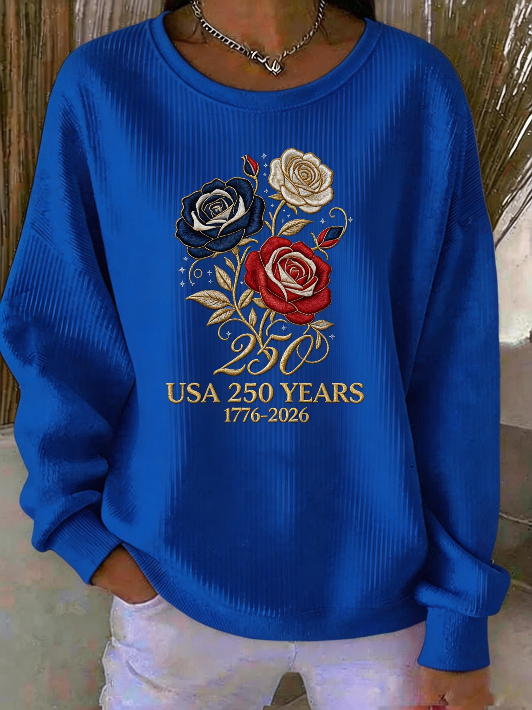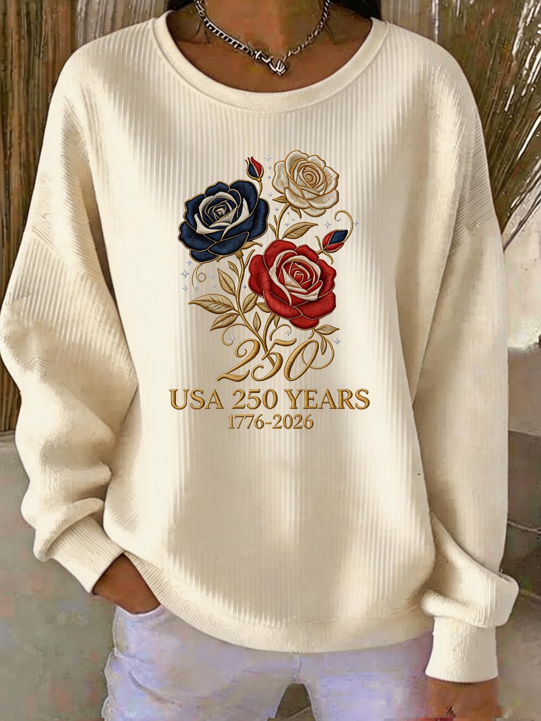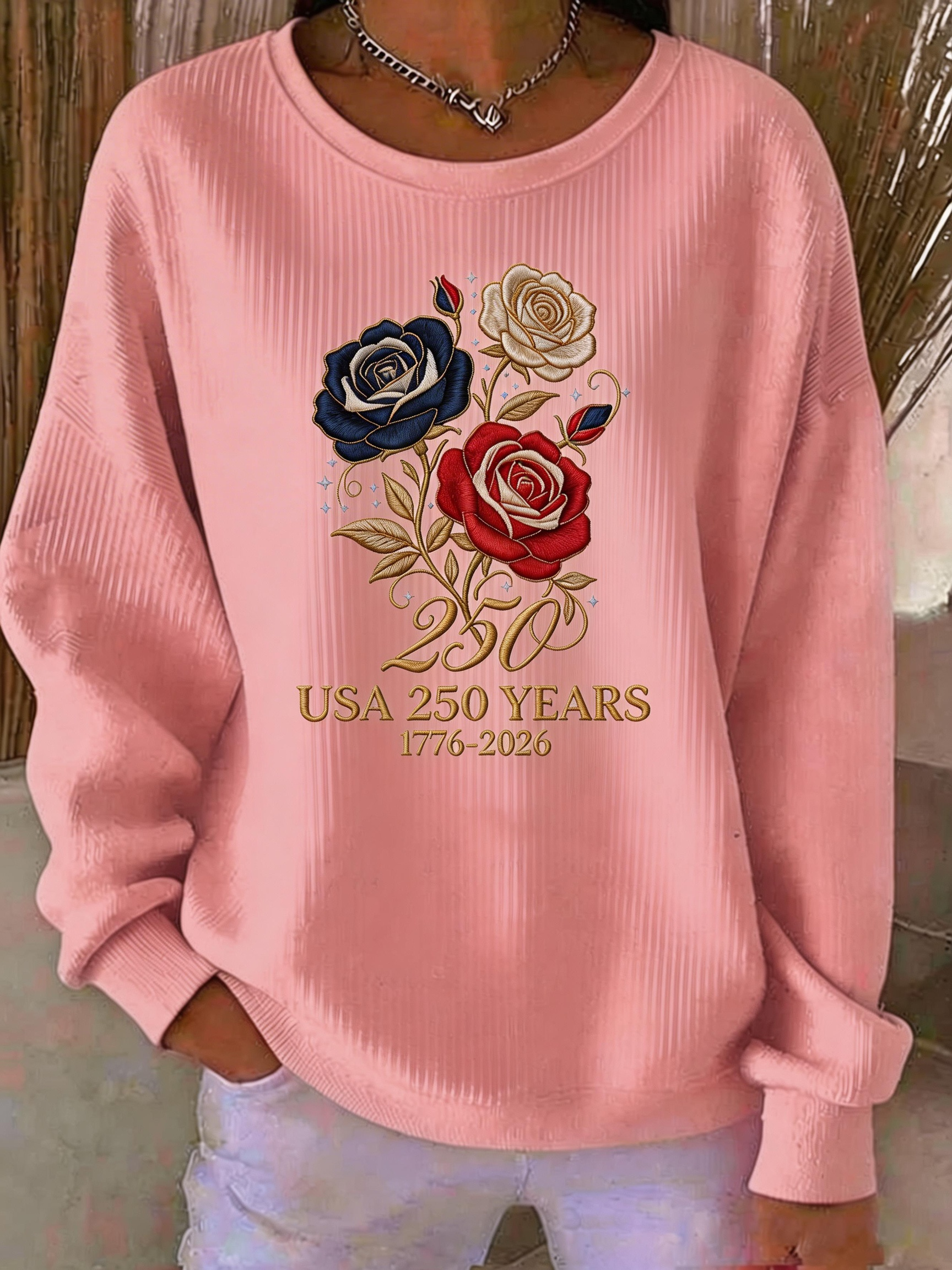 USA 250 Years Celebration Rose Print Sweatshirt