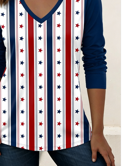 V Neck Casual Cotton-Blend Geometric T-Shirt