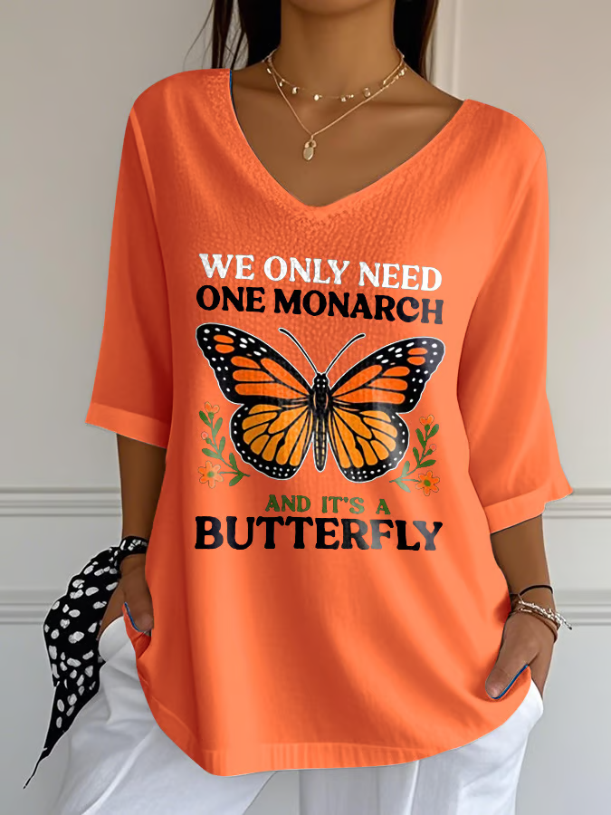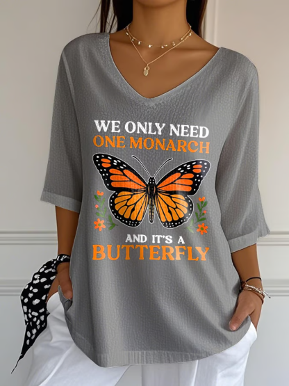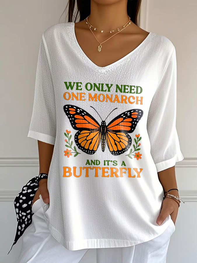 V-Neck Retro We Only Need One Monarch And It's A Butterfly Print T-Shirt