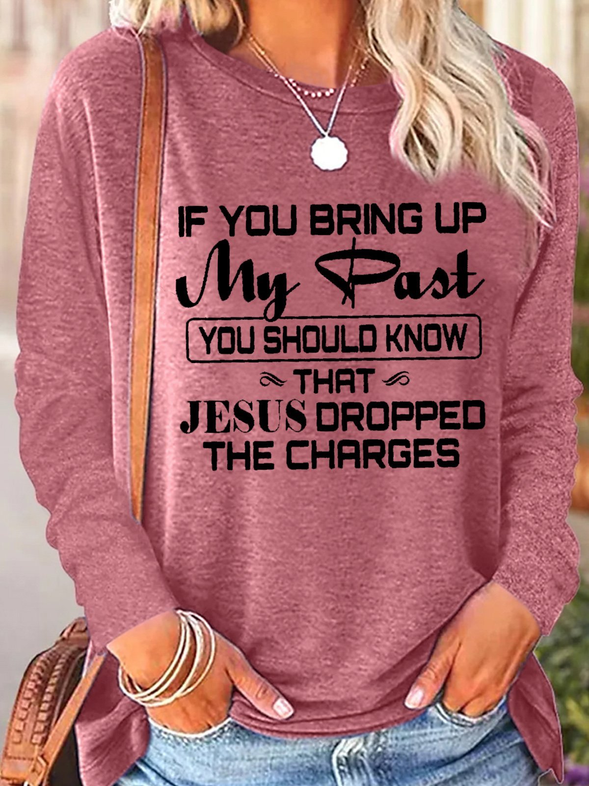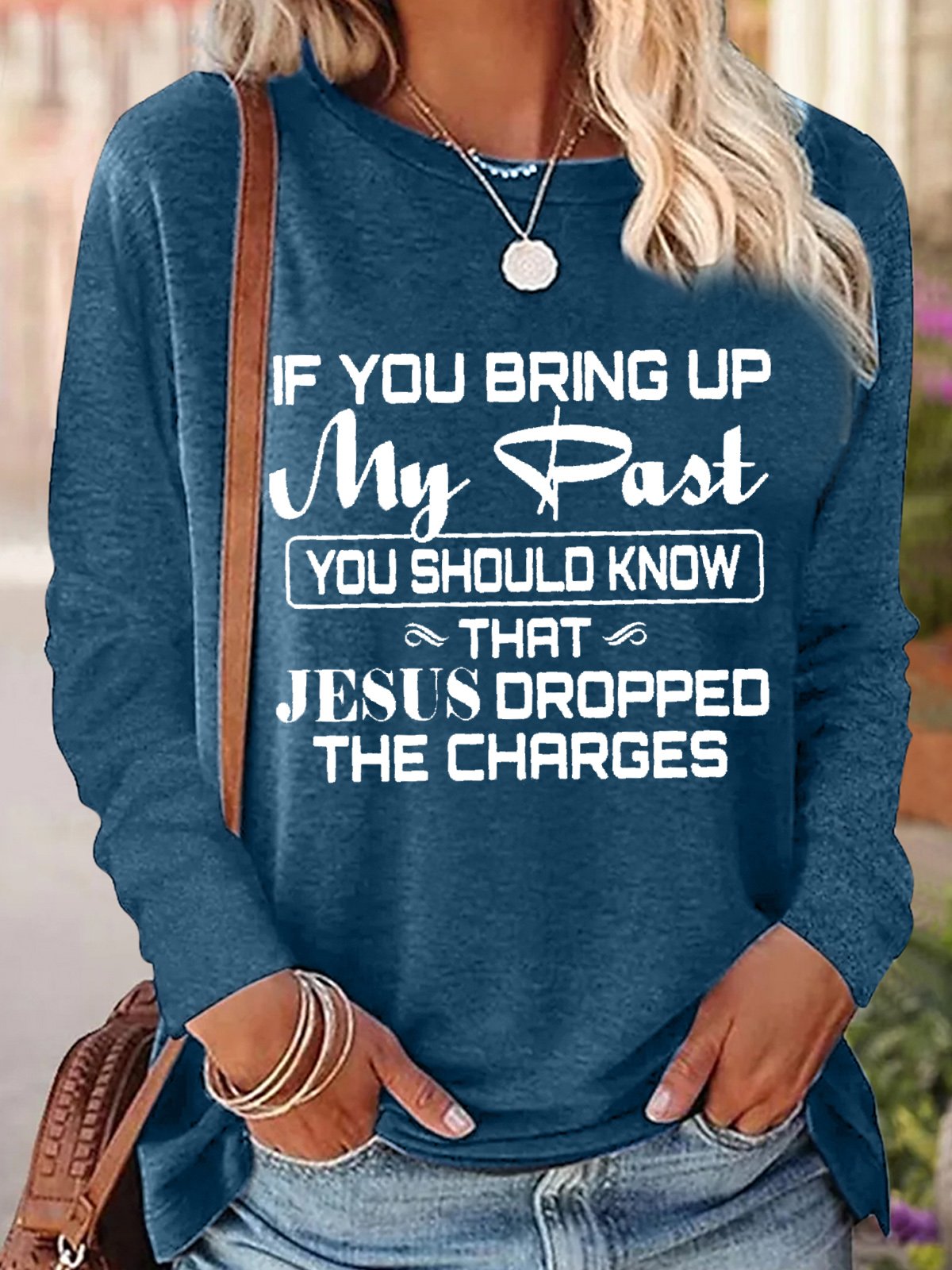 Women's If You Bring Up My Past You Should Kno That Jesus Dropped The Charges Christian Gold Casual Top