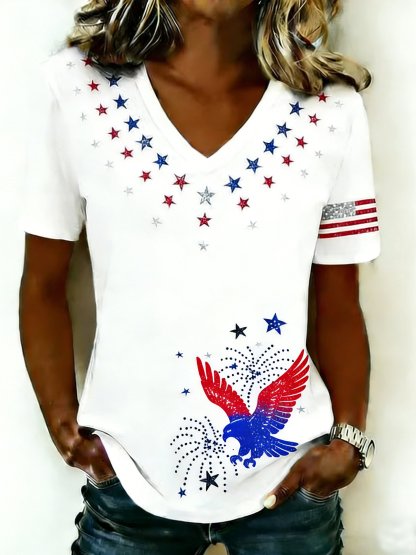Women's 250th Anniversary Of The Founding Of the United States Cotton Vintage Short Sleeve V Neck 3D Printing Aemerica Flag Daily Going Out Casual T-Shirt