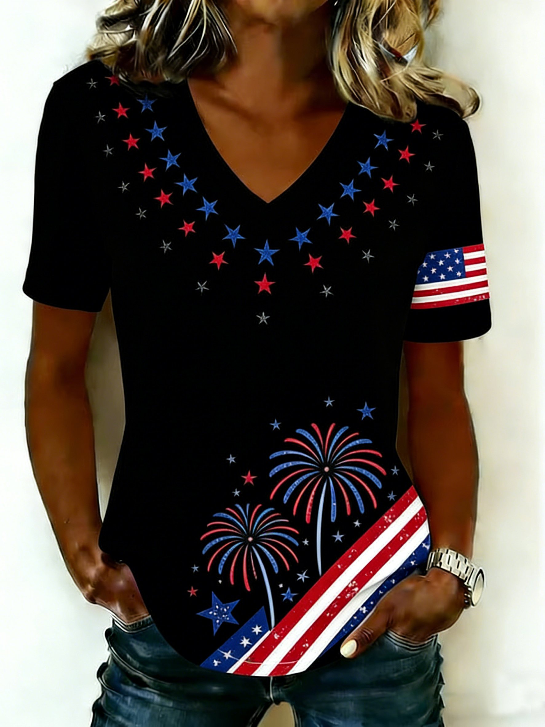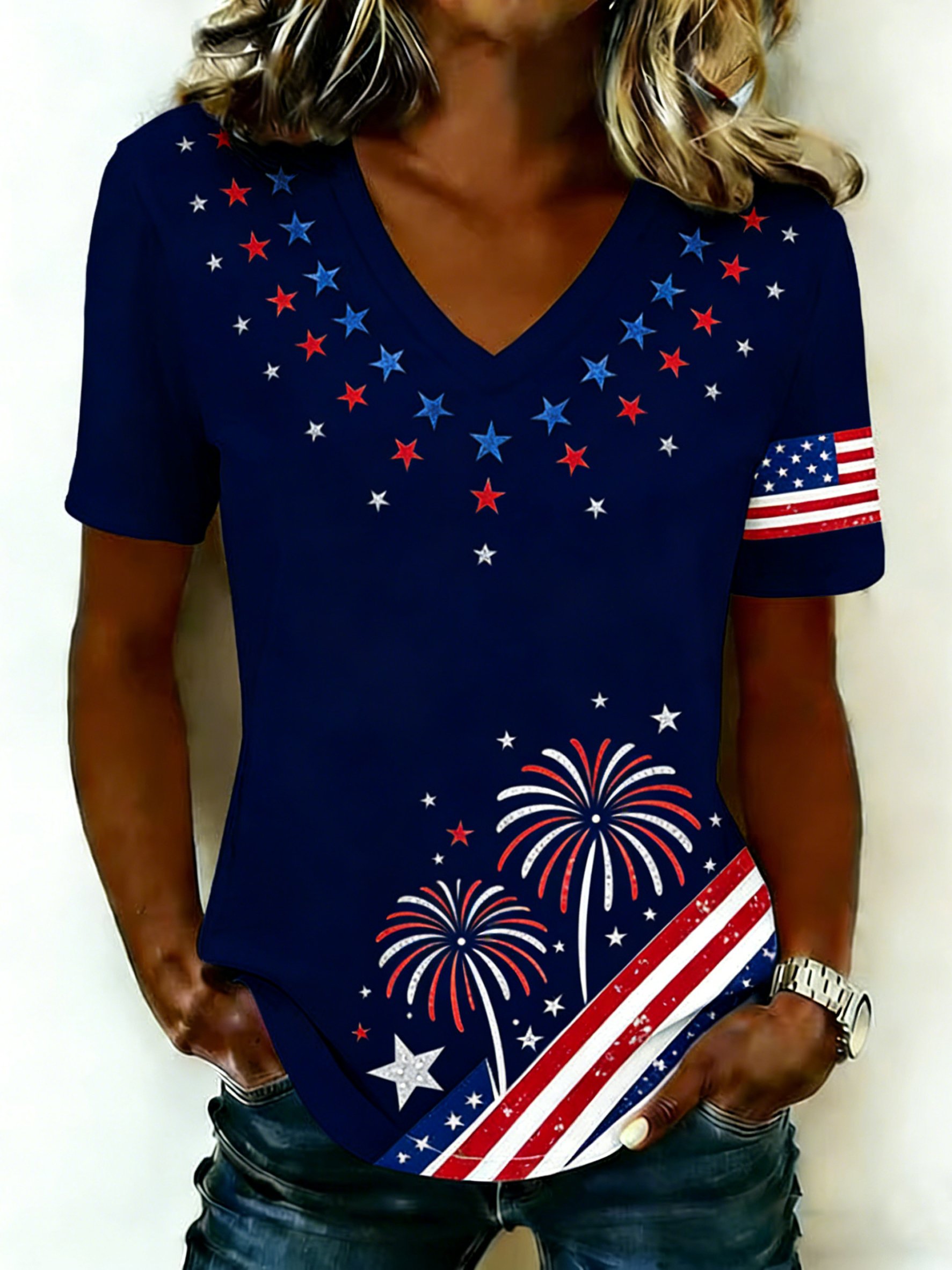 Women's 250th Anniversary Of The Founding Of the United States Cotton Vintage Short Sleeve V Neck 3D Printing Aemerica Flag Daily Going Out Casual T-Shirt