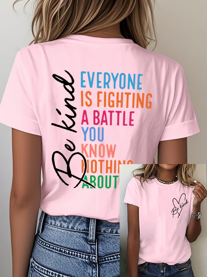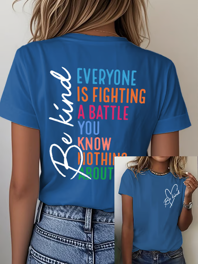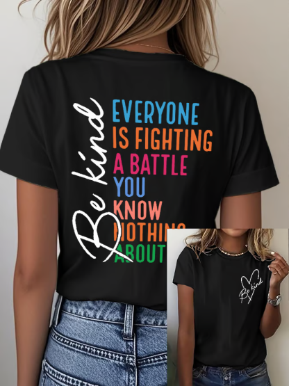 Women's Be Kind Everyone You Meet Is Fighting A Battle You Know Nothing About Print Round Neck T-shirt