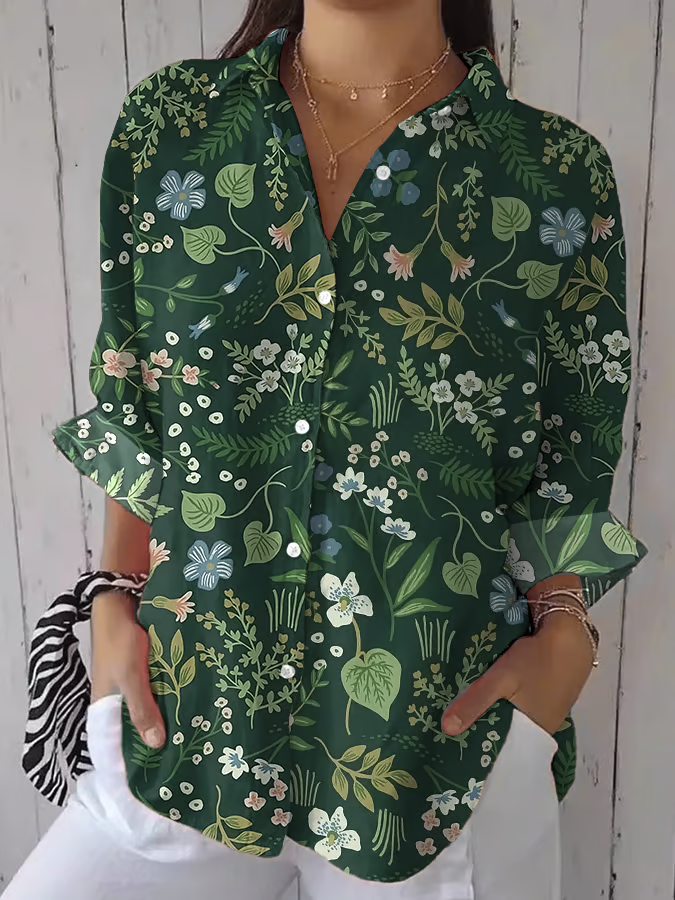 Women's Casual Cotton And Linen Spring Floral Cotton And Linen Shirt