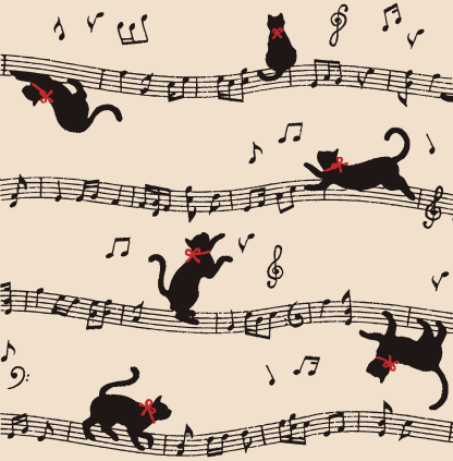 Women's Cat and Music Notes Art Print Vintage T-Shirt