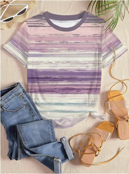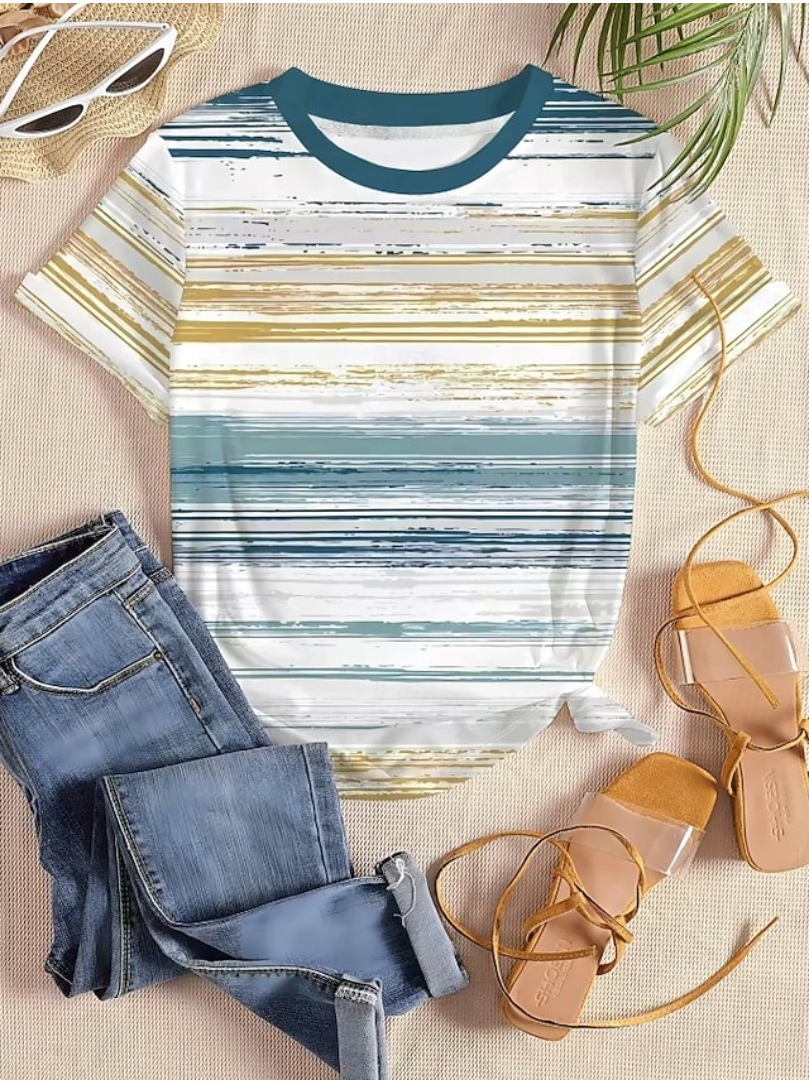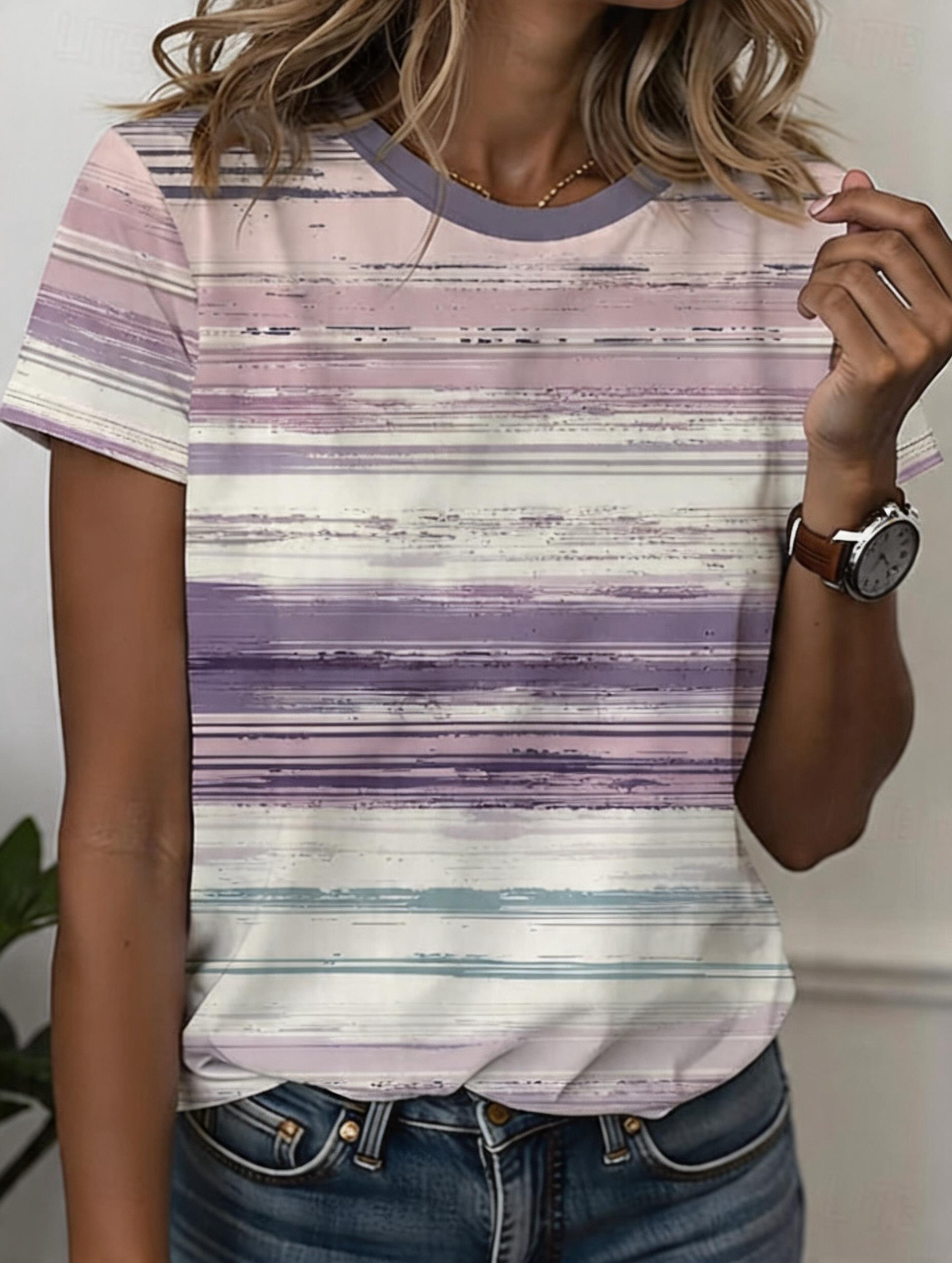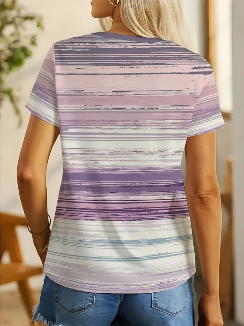 Women's Fashionable Striped Print Short-Sleeve T-Shirt