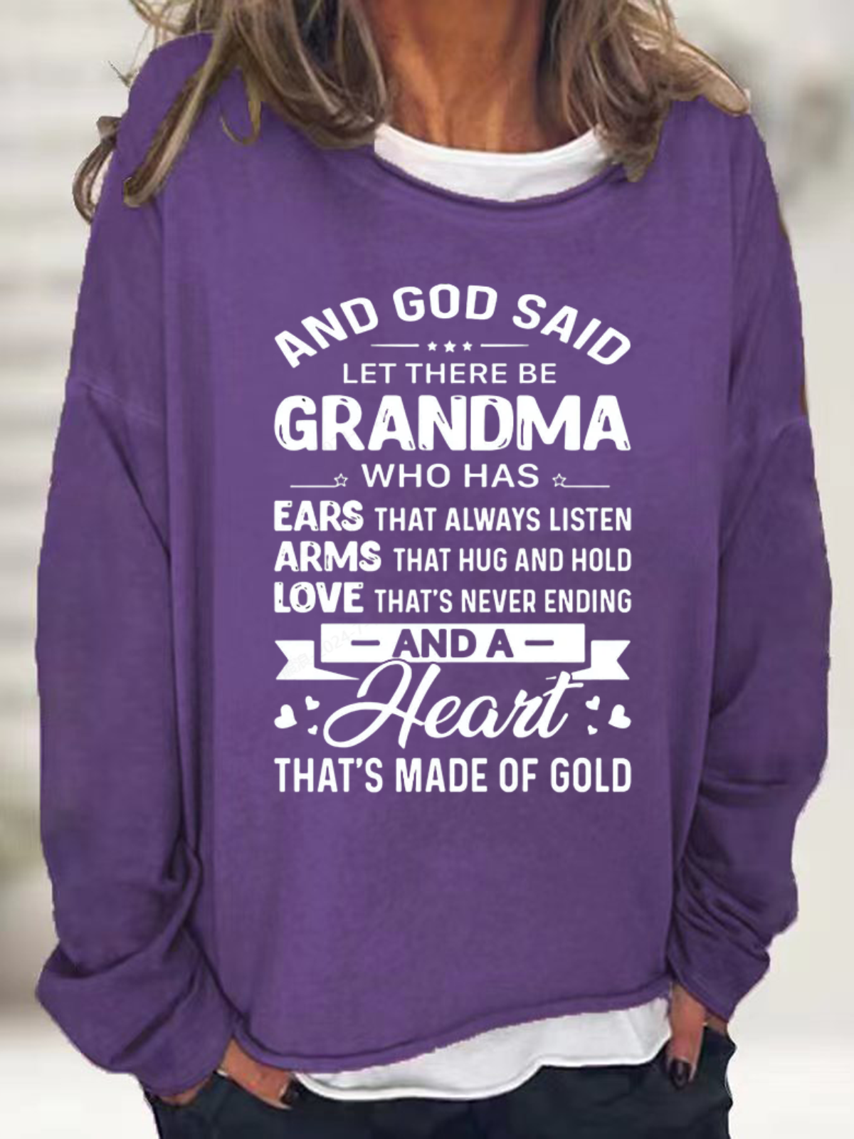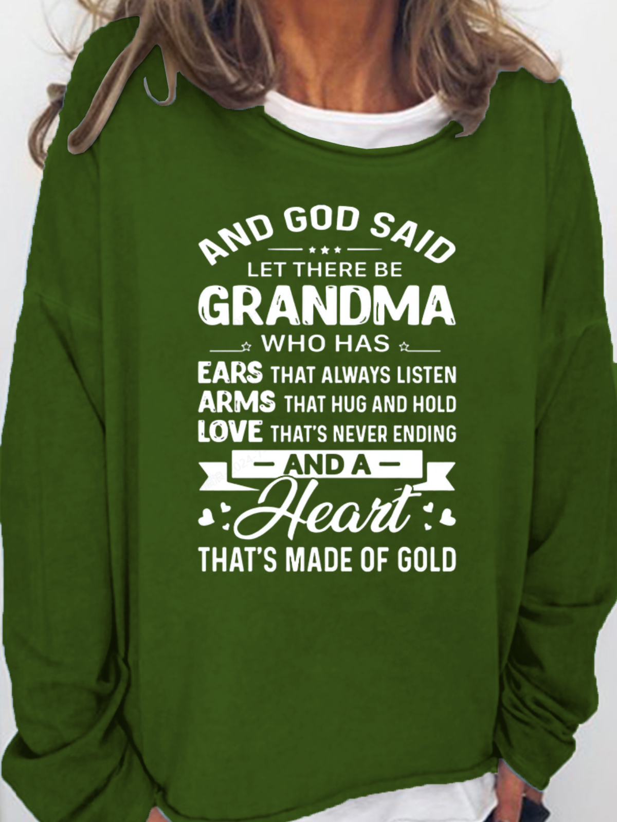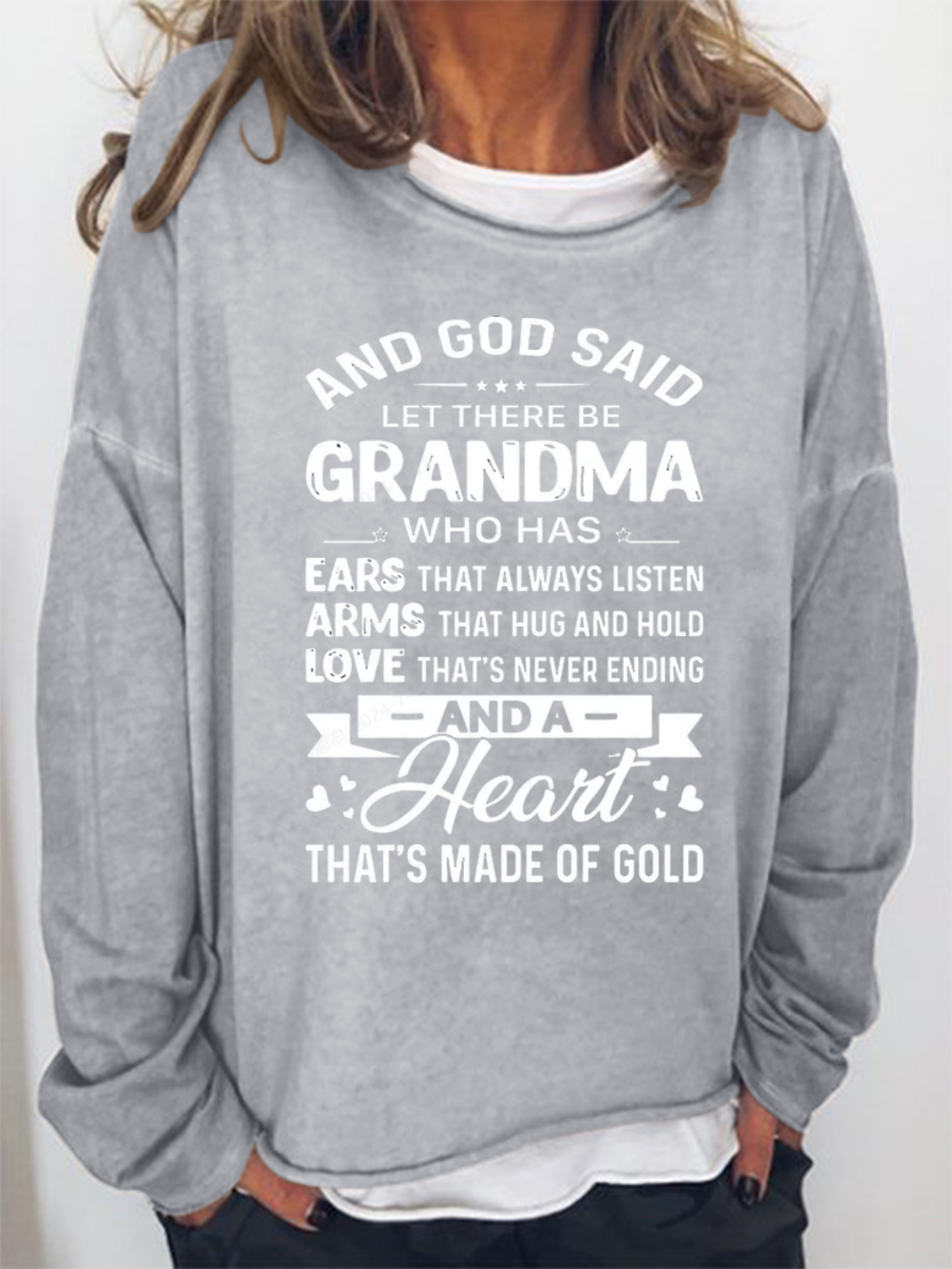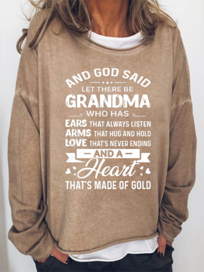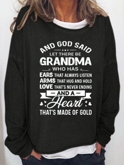 Women's God Said Let There Be Grandma Who Has Ears That Always Listen Letter Sweatshirt