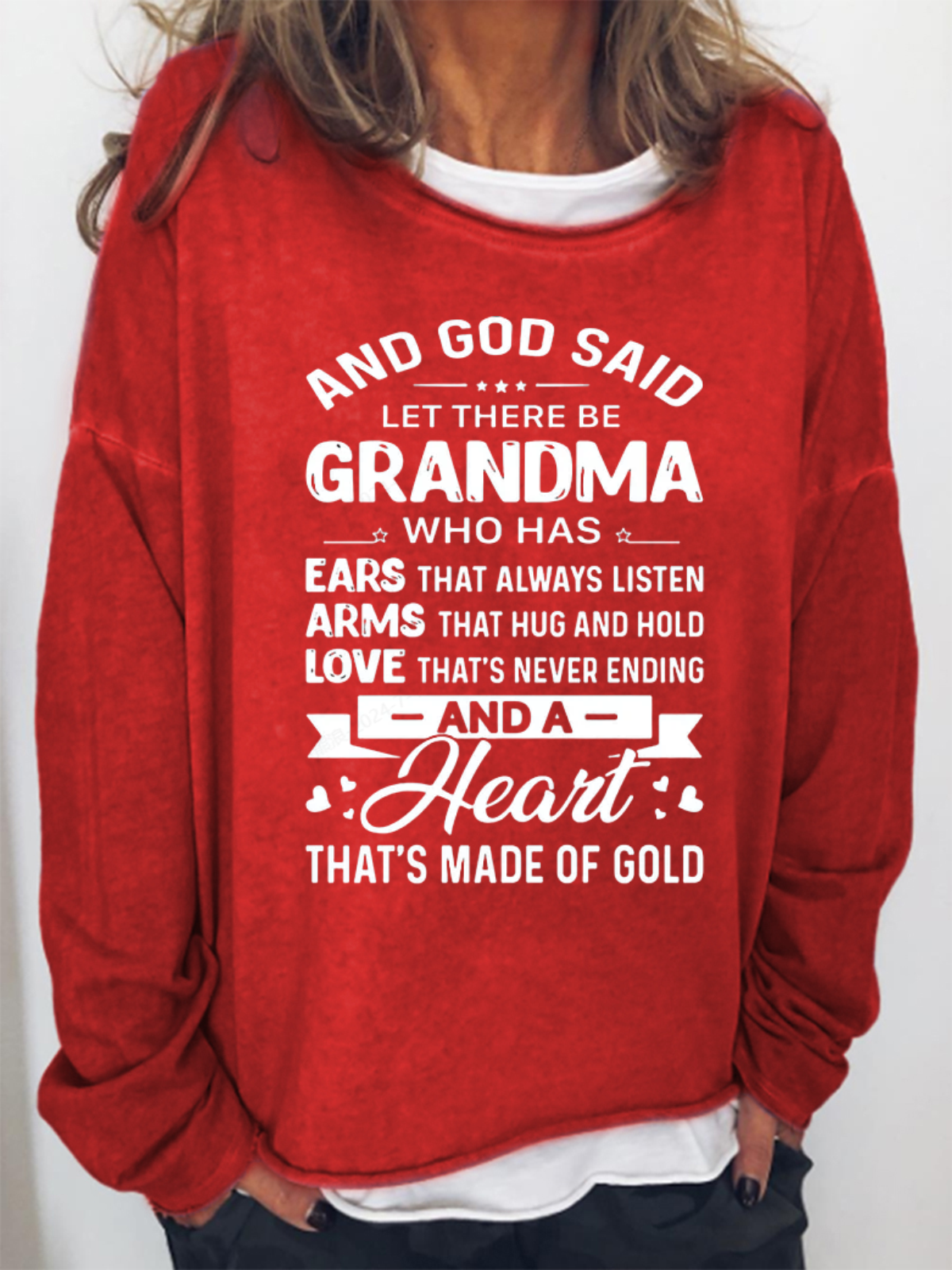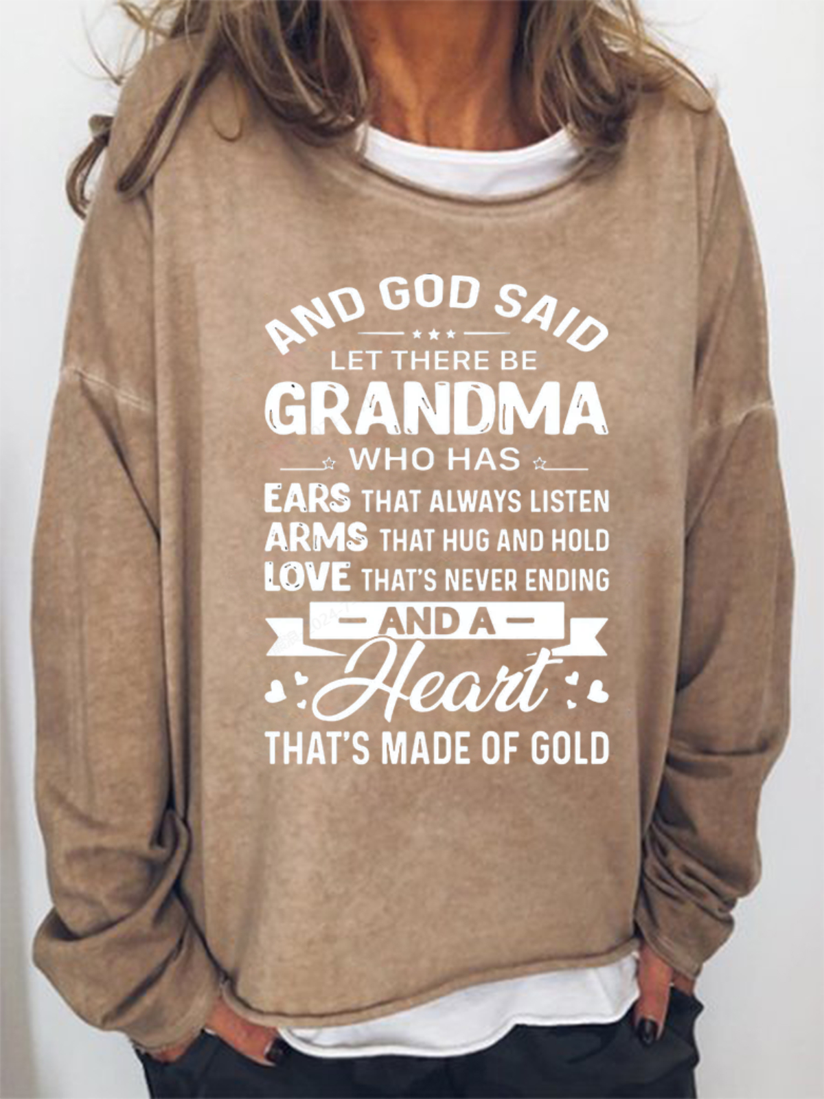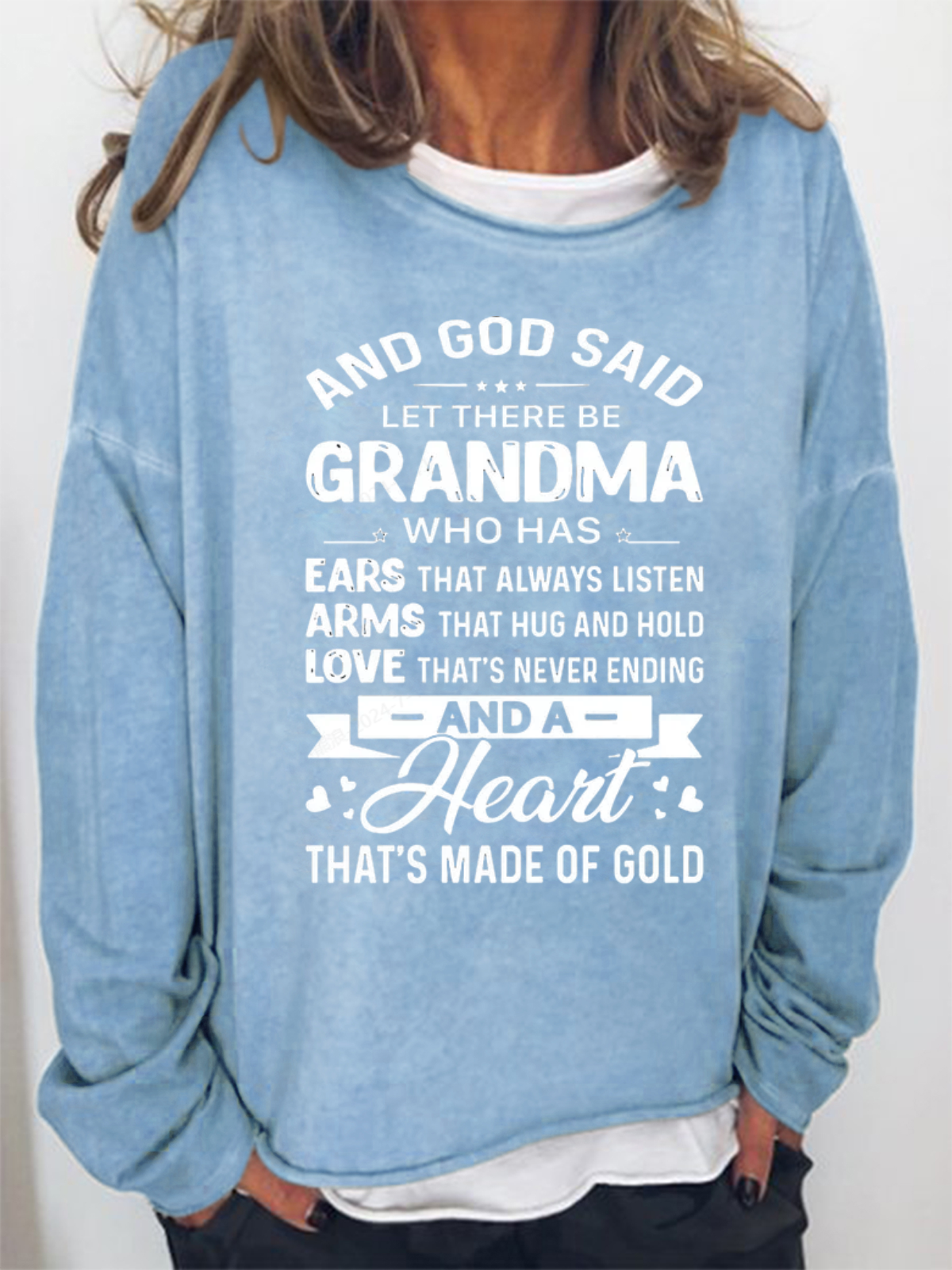 Women's God Said Let There Be Grandma Who Has Ears That Always Listen Letter Sweatshirt